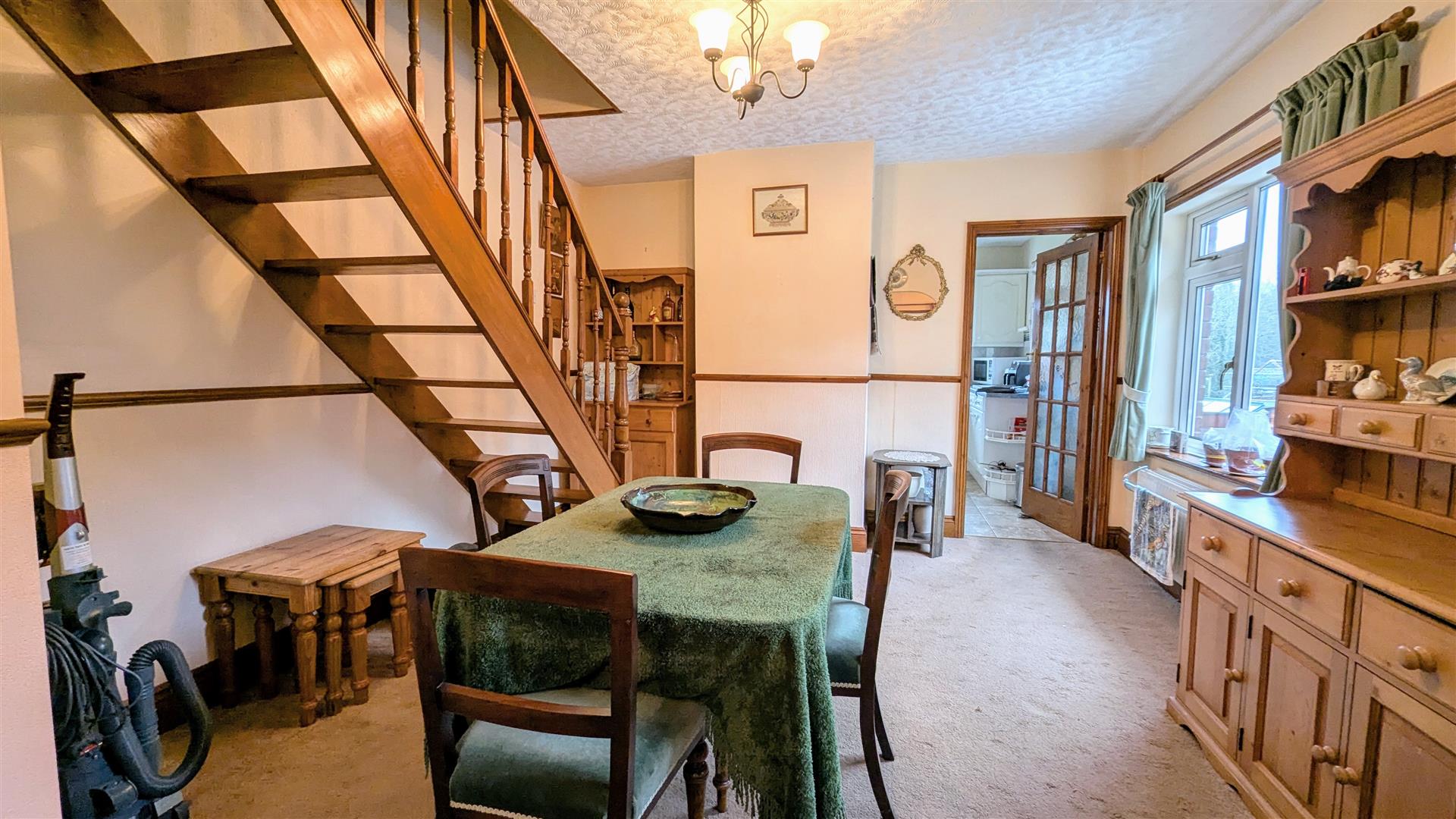 Dining Room - 3.61m x 3.45m (11'10 x 11'04) - Power points, radiator, side aspect upvc double glazed window, stairs leading up to the first floor. Partly glazed wooden door through into: