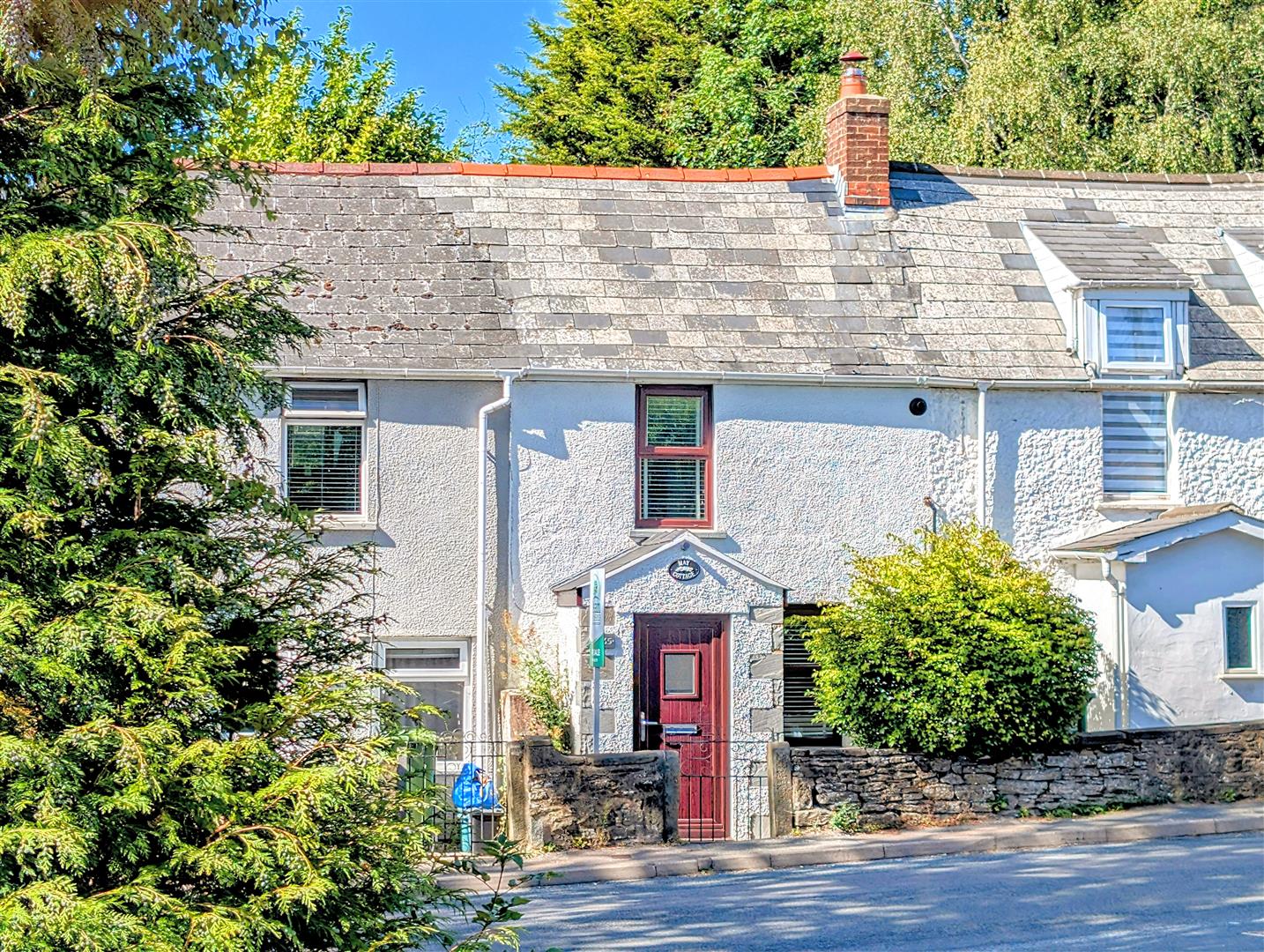 Outside - To the front, there's a path leading to the entrance door, with a decked seating area and an outside tap. A gated side access leads through to the rear garden, which is designed for low maintenance with a patio seating area, gravelled section, and an additional paved area with a large wooden storage shed. The space is fully enclosed by timber fencing.