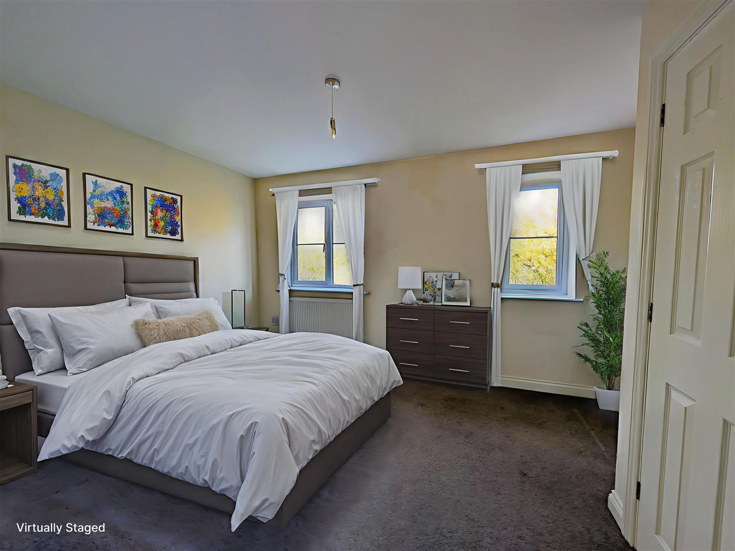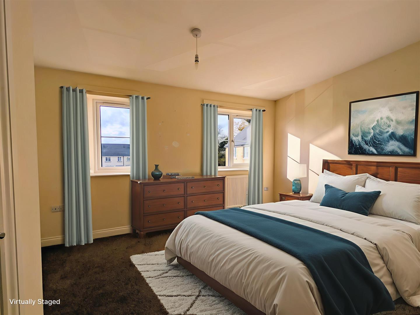 Bedroom One - 3.94m x 2.90m (12'11 x 9'06) - A good-sized double bedroom with built-in wardrobe, radiator, power points, and two rear aspect UPVC double-glazed windows offering views over the field behind.