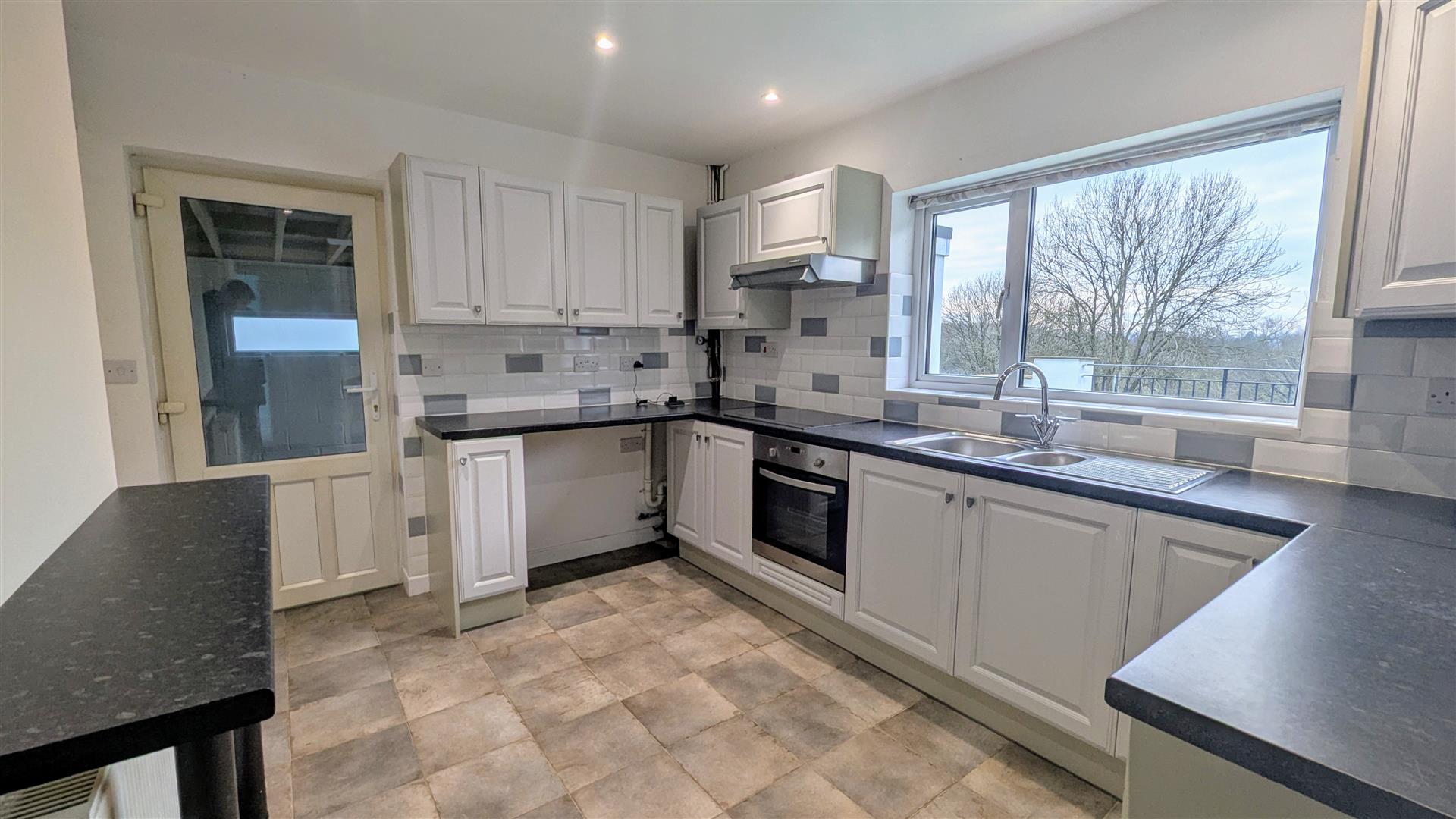 Kitchen - 3.61m x 3.05m (11'10 x 10'00) - Rear aspect double glazed upvc window giving beautiful rear aspect views, a range of wall, drawer and base mounted units, built in oven, built in hob with extractor fan, space for washing machine, space for under counter fridge/ freezer, space for fridge freezer, inset celling spotlights, breakfast bar, fuse box, one and a half bowl single drainer unit with mixer tap over. Side aspect double glazed upvc door which gives access out to: