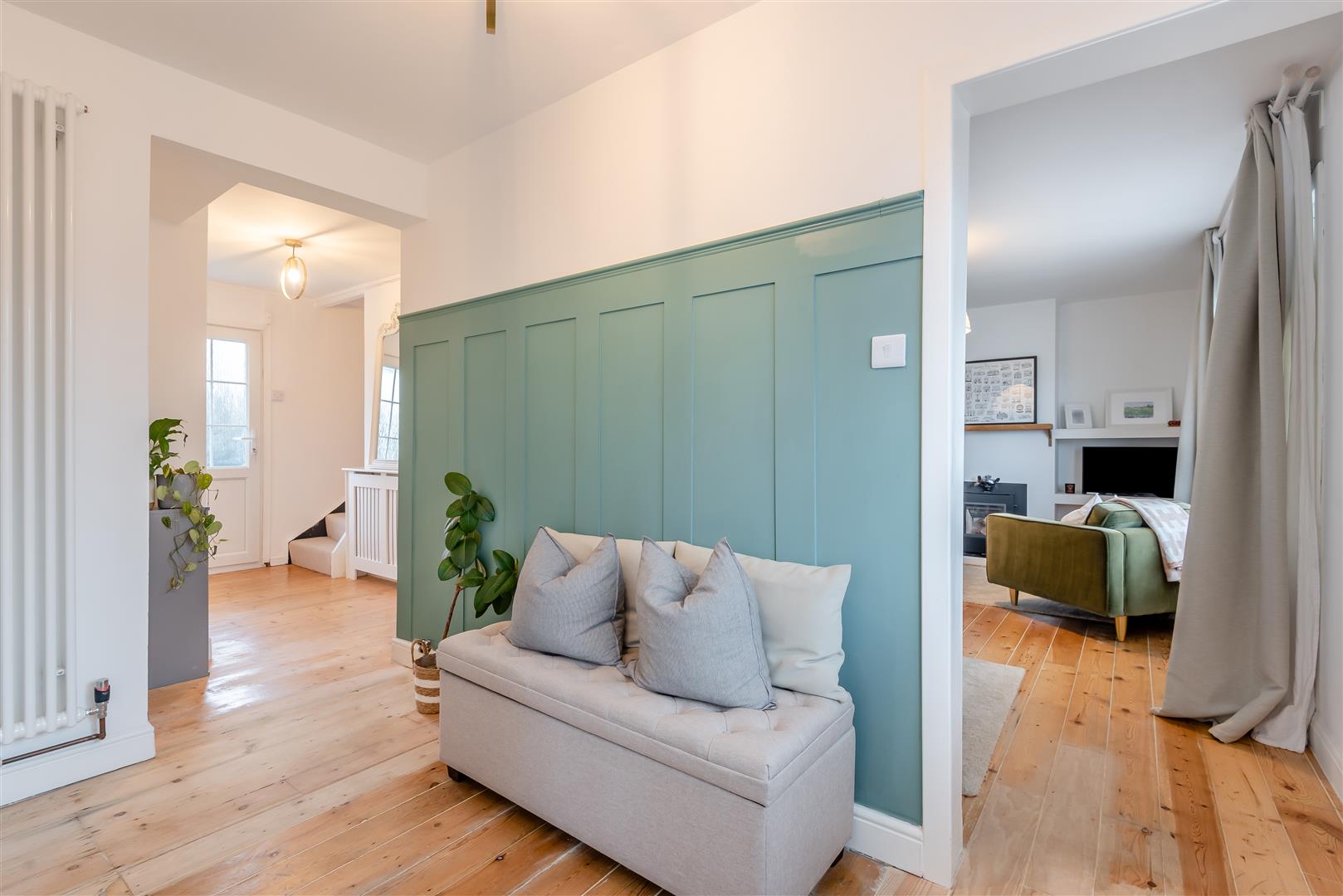 Entrance Hallway - 2.51m x 3.23m (8'03 x 10'07) - Accessed via a partially double-glazed uPVC door. Featuring wooden flooring, radiator, power points, telephone point, built-in storage cupboards and front-facing double-glazed uPVC window.