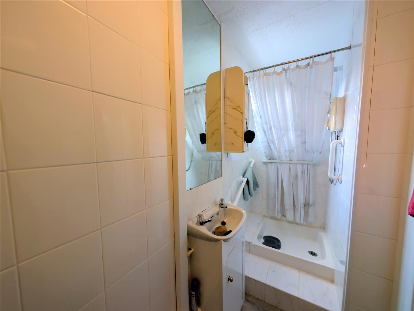 Shower Room - Shower cubicle with shower attachment, close coupled W.C, sink unit.