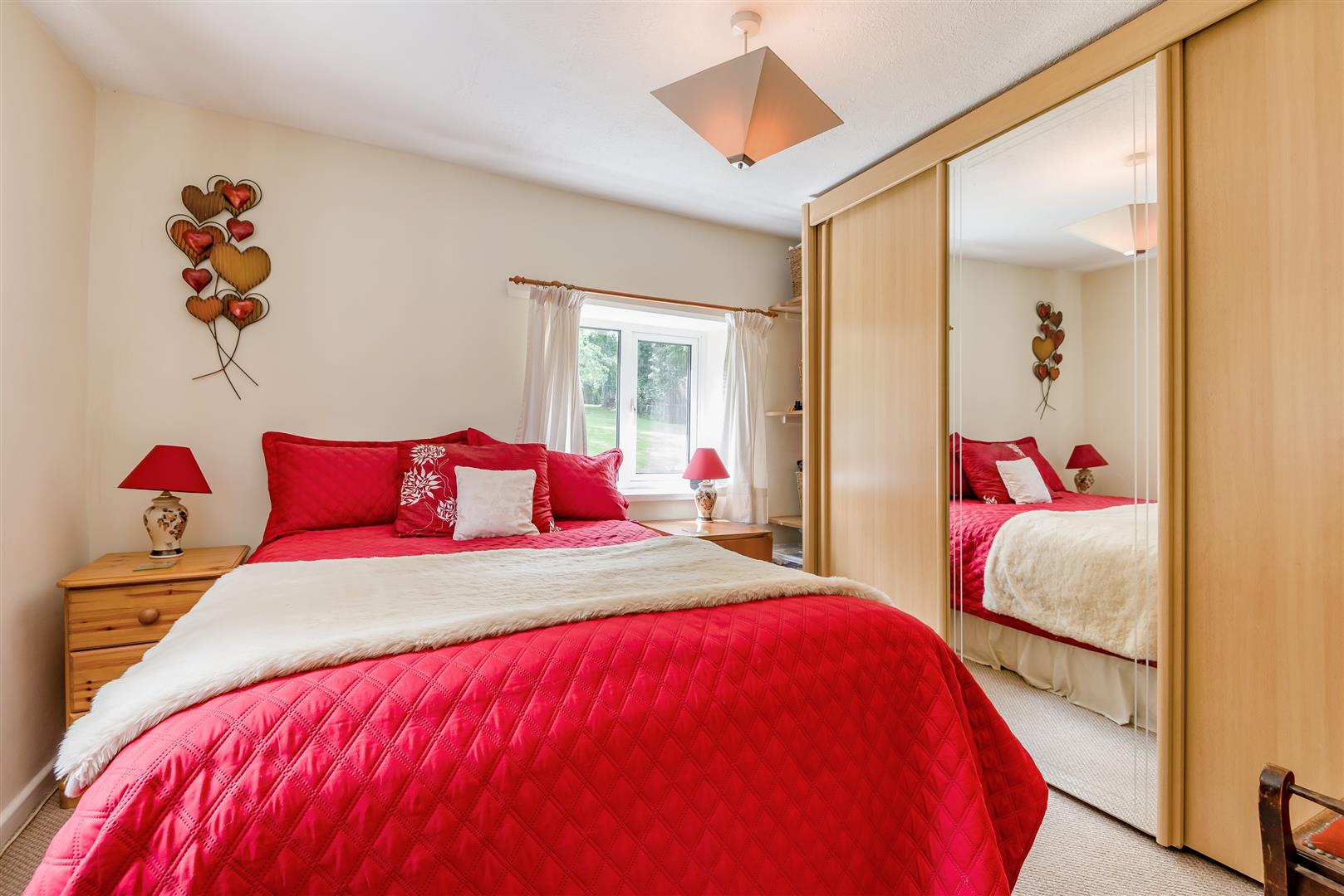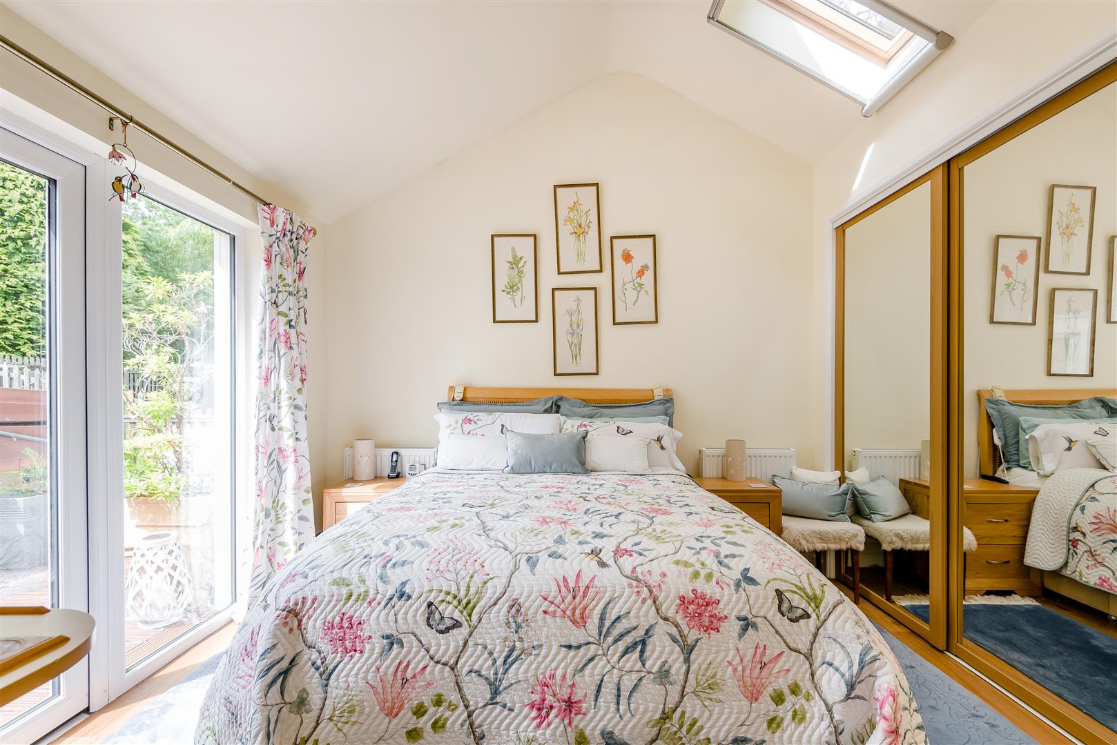 Bedroom 2 - 3.33m x 3.30m (10'11 x 10'10) - Radiators, power points, Velux window with fly screen and blackout blind, mirror fronted sliding built in wardrobes, side aspect double glazed upvc window, side aspect double glazed upvc door out onto the decked area, thumb latch door to: