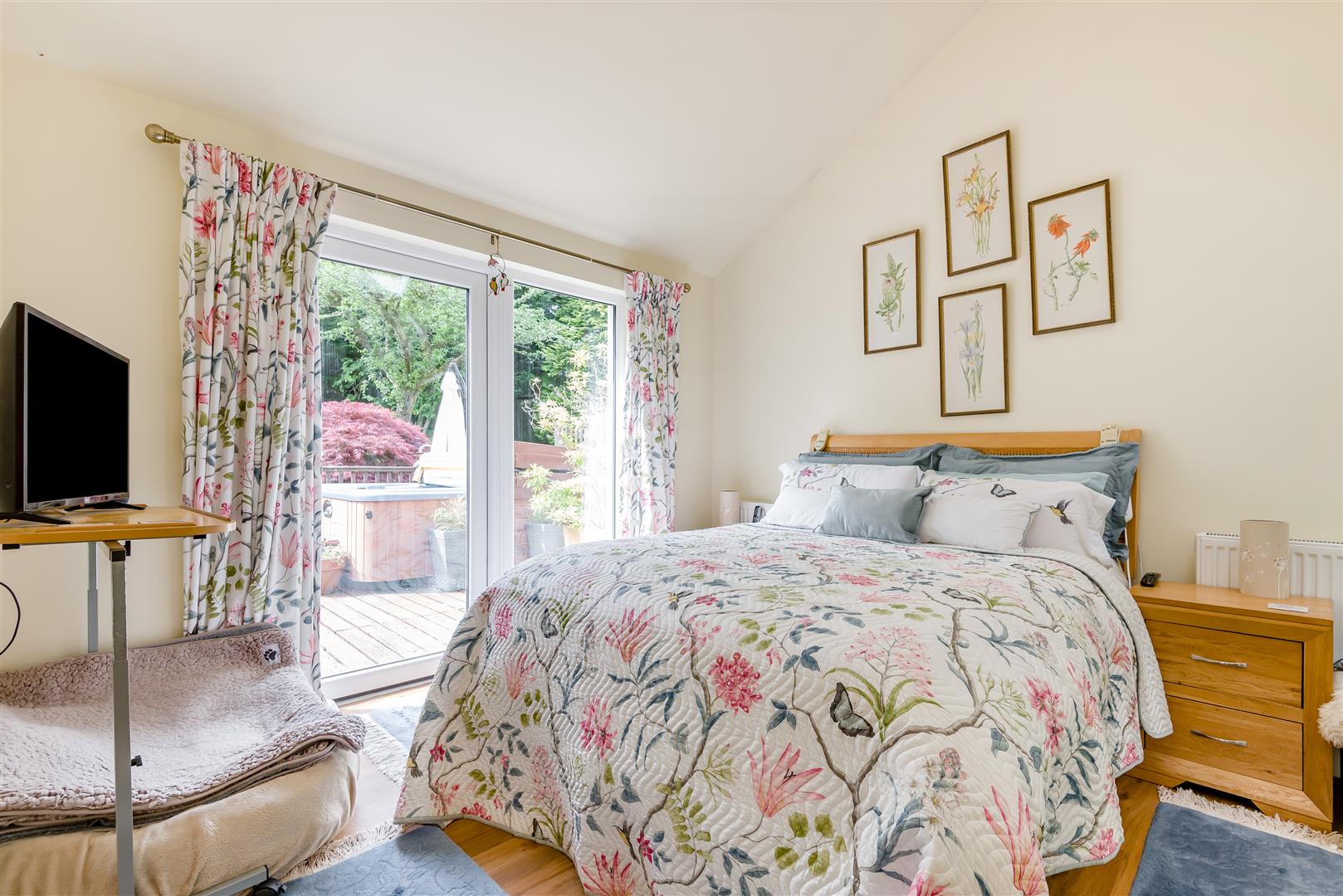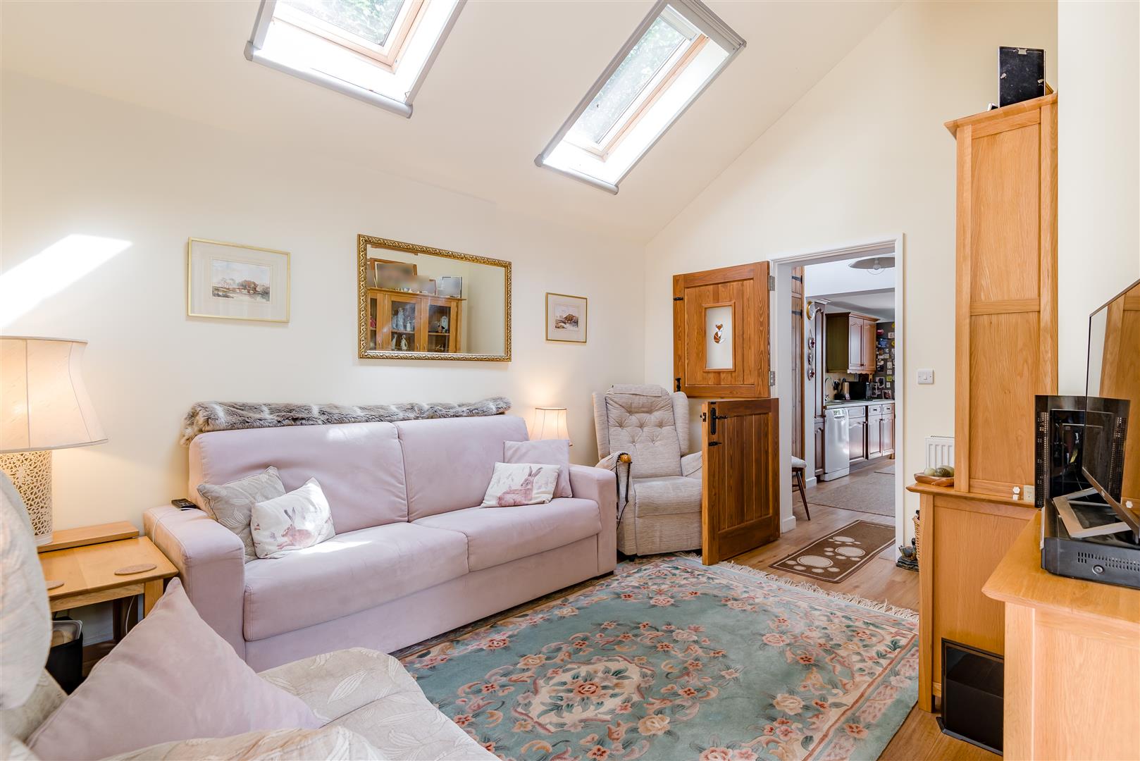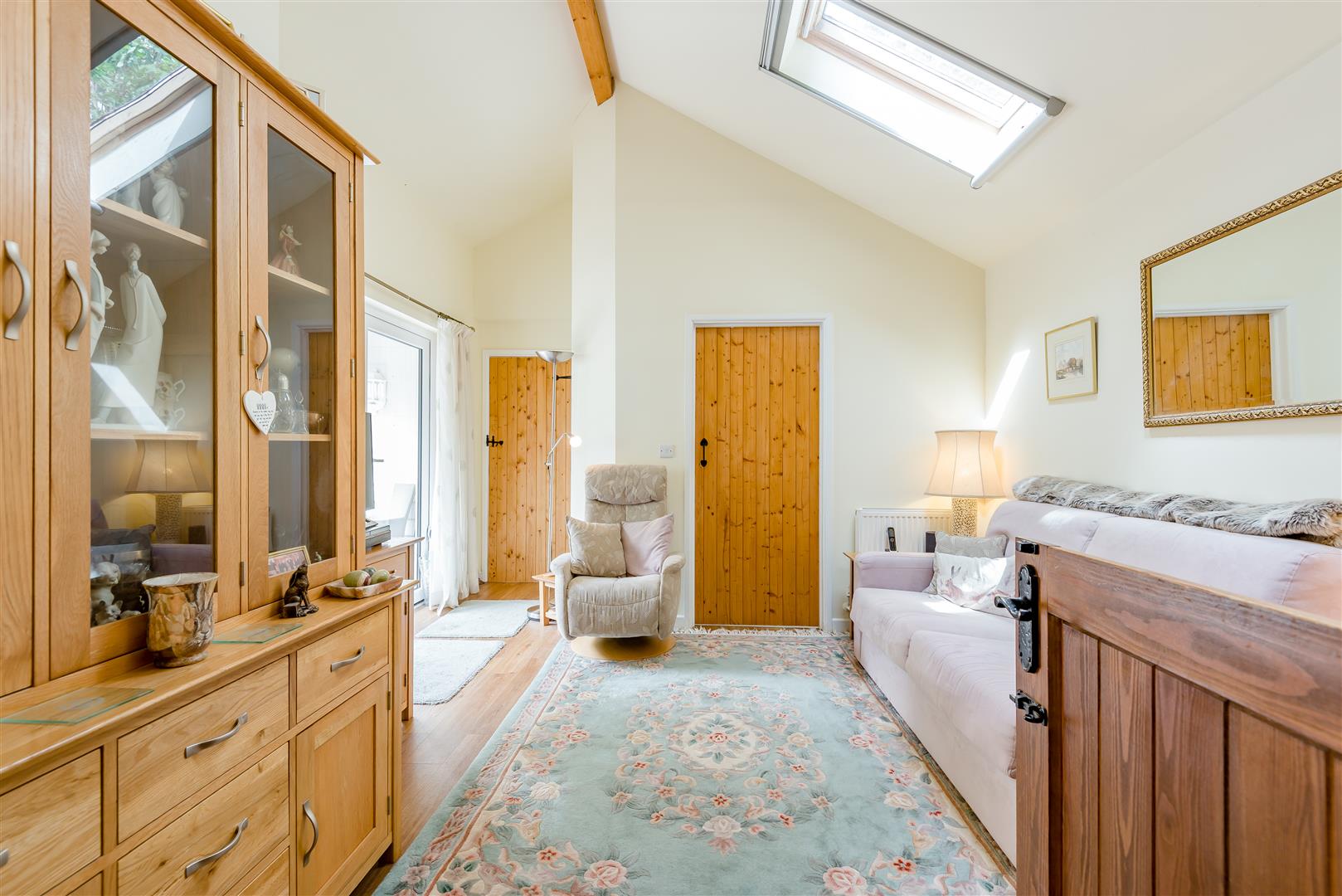 Snug - 3.76m x 3.76m (12'04 x 12'04) - Accessed via stable door from the Kitchen. This room was built and designed as a separate annexe in conjunction with bedroom two for a relative, however is now seamlessly integrated by the current owners as part of their main living accommodation. Radiators, power points, television point, two Velux windows with fly screens and blinds, door to shower room, side aspect double glazed upvc double doors out to the decked area, thumb latch door to: