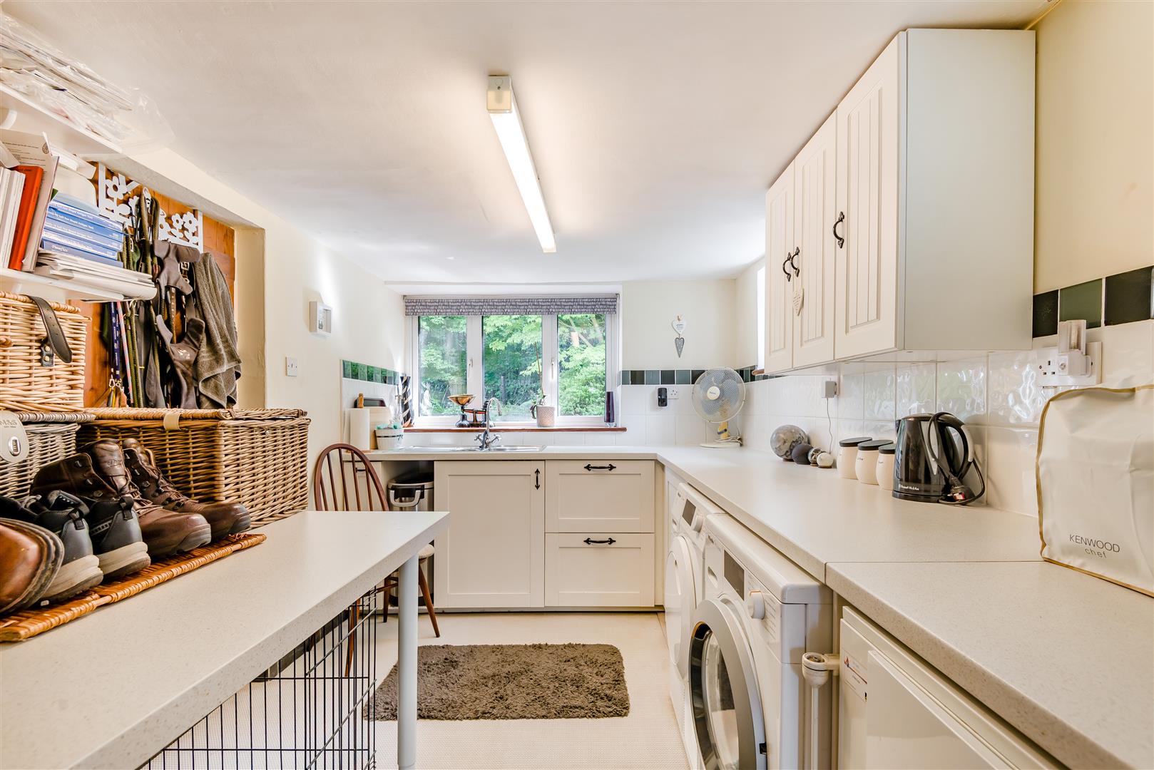 Utility Room - 3.38m x 2.29m (11'01 x 7'06) - A range of base, drawer and wall mounted units, rolled edge worktops, one and a half bowl single drainer stainless steel sink unit with mixer tap above, space and plumbing for washing machine, space for tumble dryer, gas fired Worcester boiler, power points, partly tiled walls, front and side aspect double glazed upvc windows, thumb latch door to: