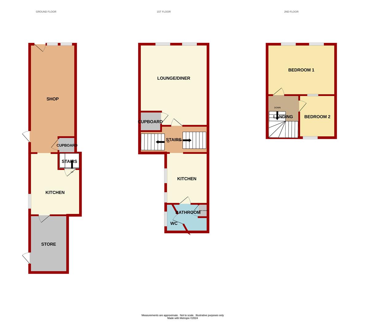 Shop Front - 7.39m x 2.87m (24'3 x 9'5) - Currently used as a butchers but suitable for a variety of uses. Front aspect windows, under stairs cupboard, opening through into: