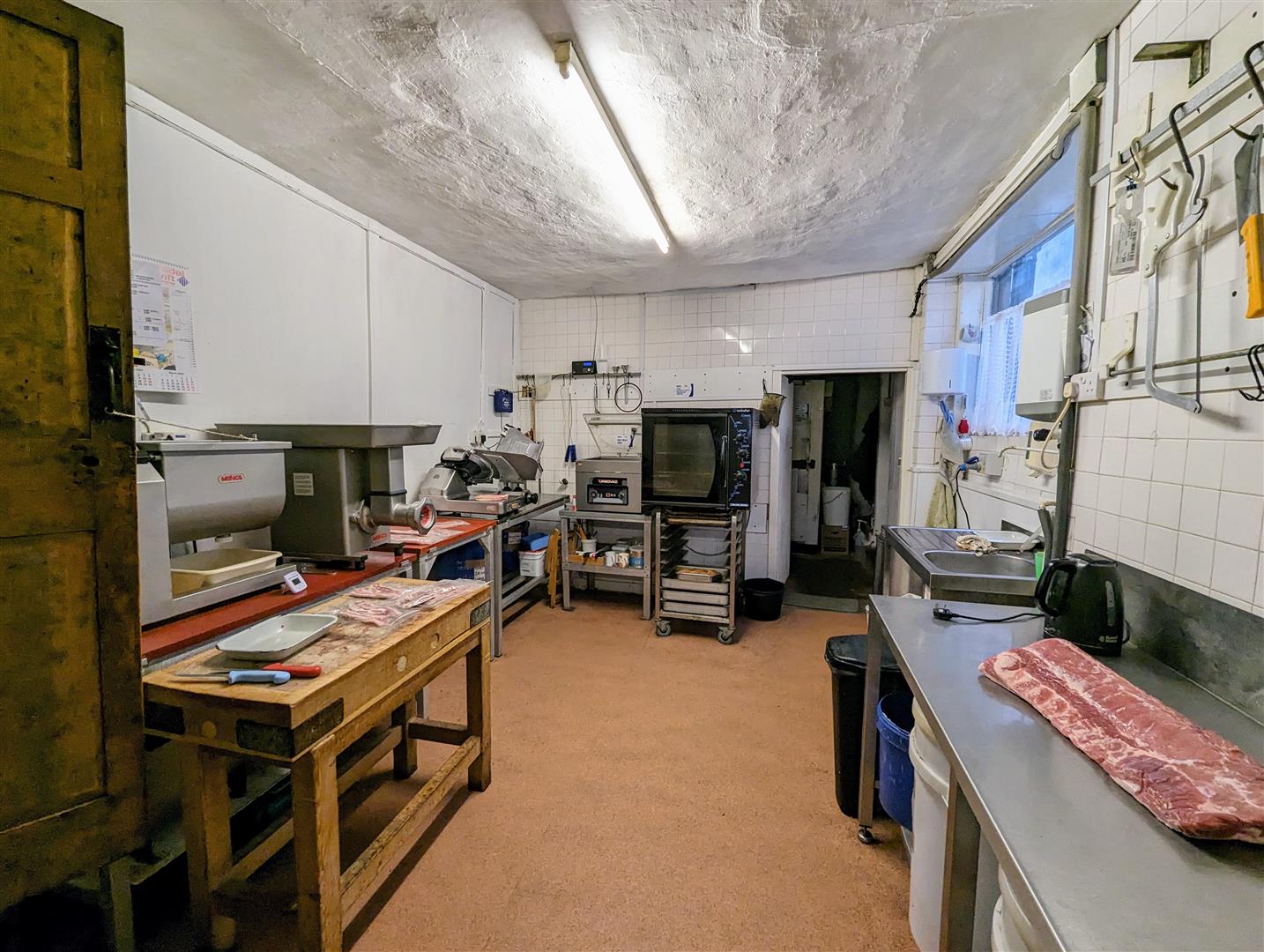 Butchery Kitchen - 4.22m x 3.53m (13'10 x 11'7) - Kitchen is currently fitted for commercial butcher requirements including appropriate machinery and appliances, available to purchase via separate negotiation. Side aspect window, door into stairwell leading to First Floor, door through into: