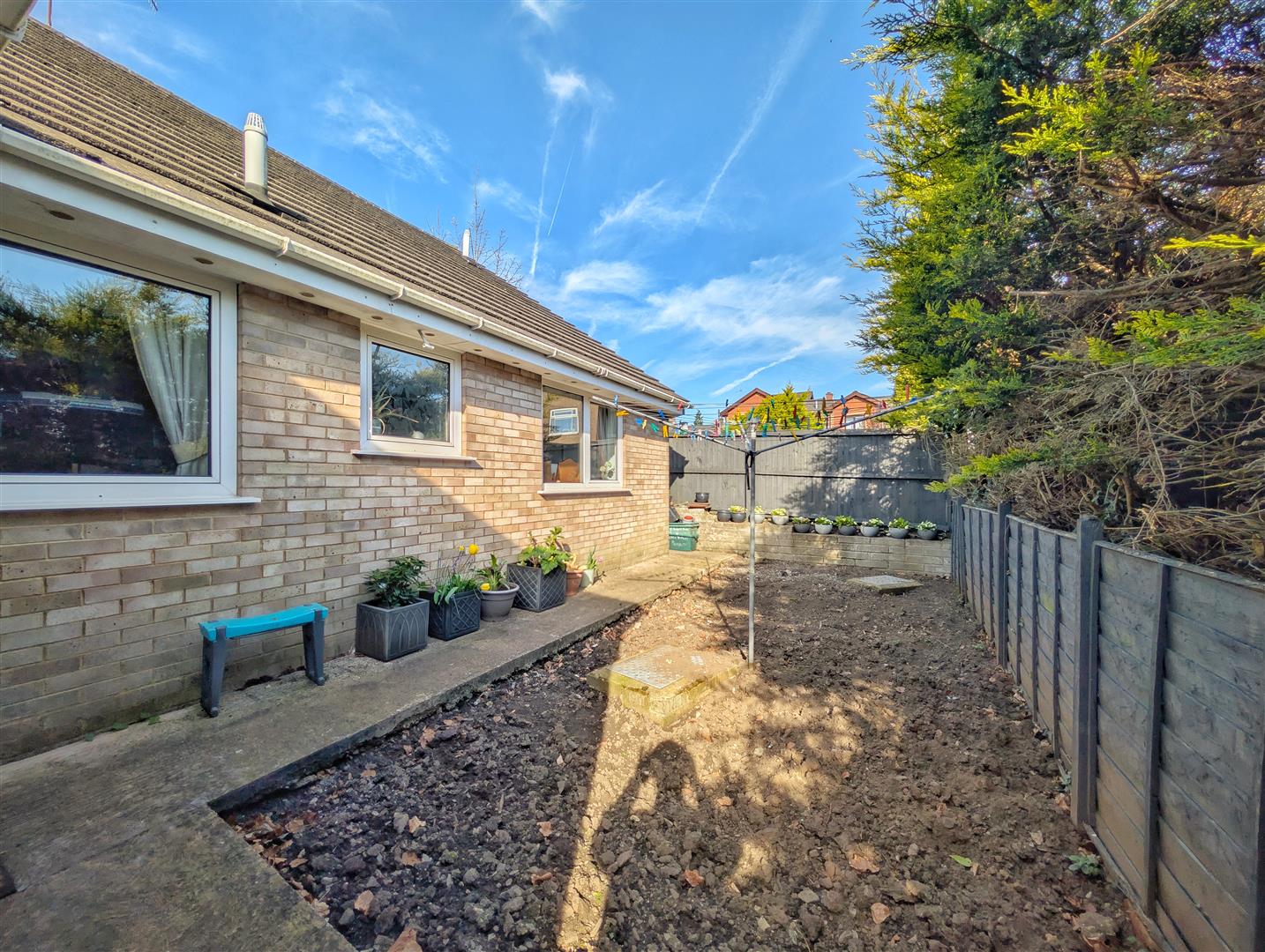 An enclosed rear garden, mainly laid to soil, offering potential for landscaping and planting. Access leads to the front of the property.