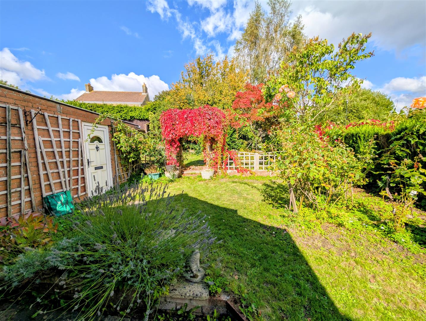 The rear garden is tiered with a lower level patio, lawn with steps to a second lawned area, and a decked seating area at the top. Well-stocked with mature shrubs and trees, enclosed by fencing and hedging. Side gates provide access from front to rear.