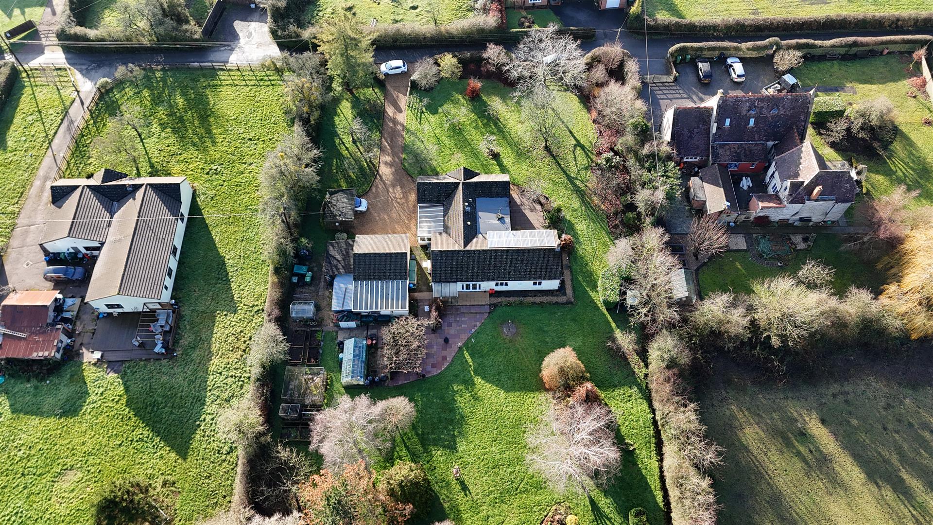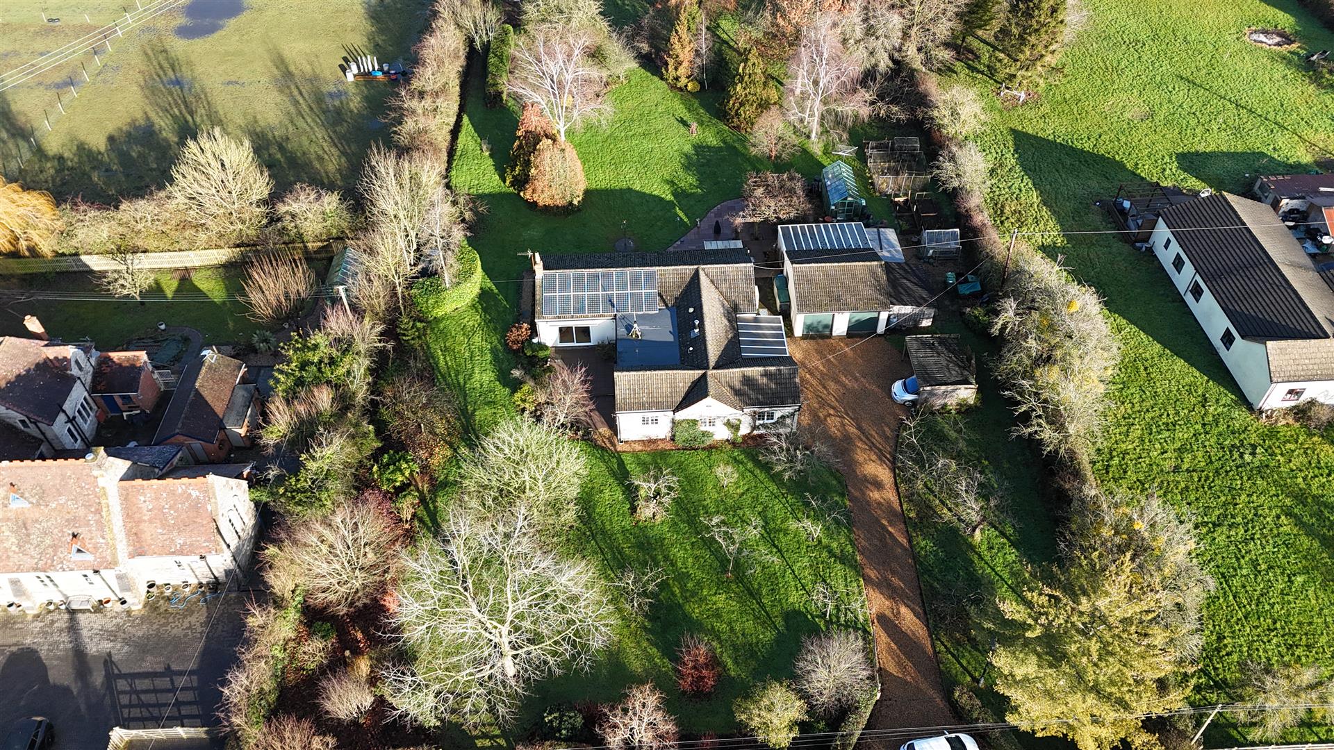 To the front of the property, there is a patio area, a good sized lawned area, various fruiting trees, separate five bar gated access to the front. From either side, access can be gained through to the rear of the property and the main area of ground. There is a large paved patio area with pergola over, further lawned area, flower beds and borders, mature shrubs, bushes and trees, outside lighting, outside taps, cultivated vegetable produce area with raised beds, large and smaller greenhouse, caging for raspberries etc. The gardens continue into an area containing an orchard, specimen trees, a small wildflower meadow and a natural pond. The garden has a natural hedging boundary and amounts to just over two acres.