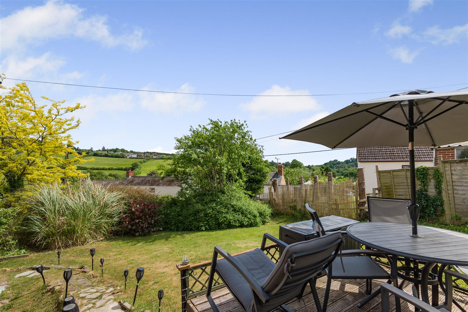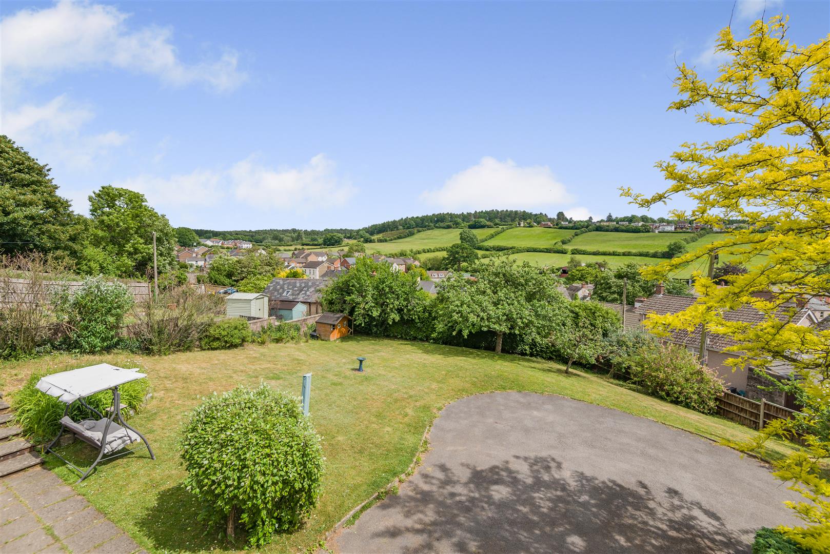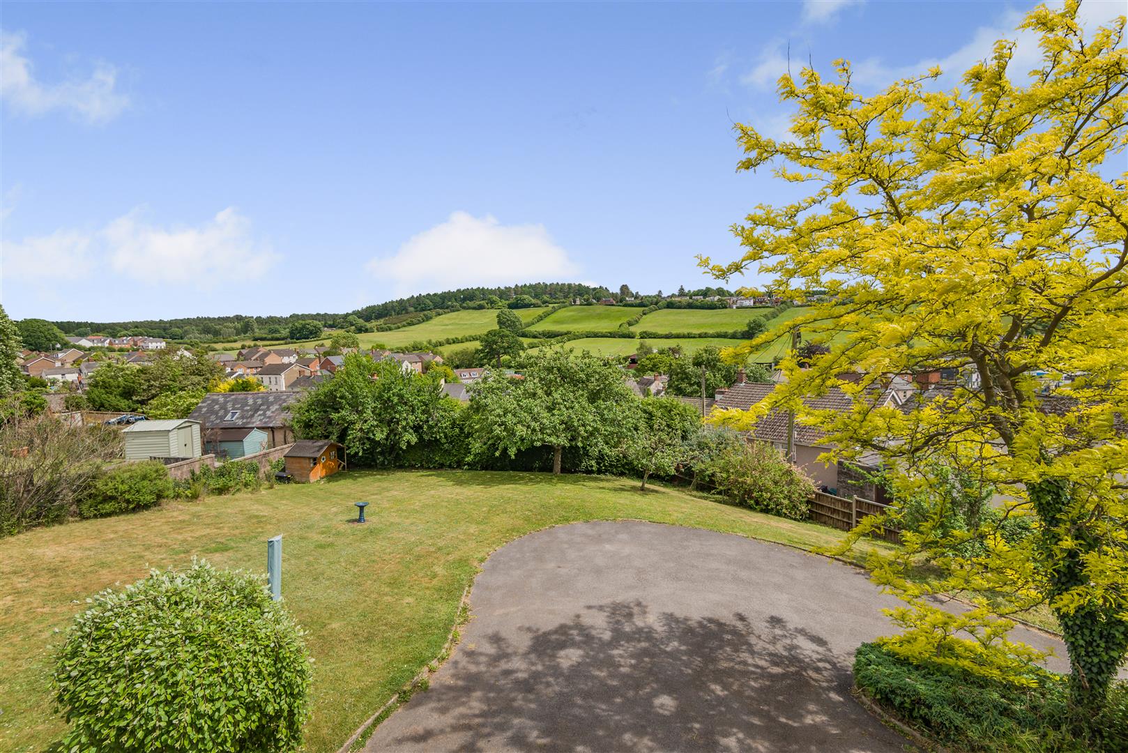 Outside - The gardens surrounding the property are predominantly laid to lawn with shrubs and plants interspersed, along with a shed and useful garden storage.