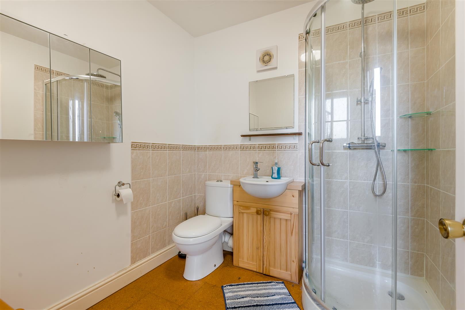 Shower Room - 2.08m x 1.96m (6'10" x 6'5") - A white suite comprising a shower cubicle with tiled surround, low level w.c and vanity washbasin. Radiator, extractor fan.