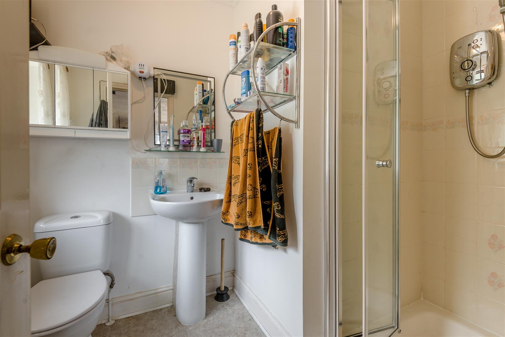 En-Suite Shower Room - Shower cubicle with electric shower and tiled surround, low level w.c, pedestal washbasin, radiator, obscured rear aspect window.