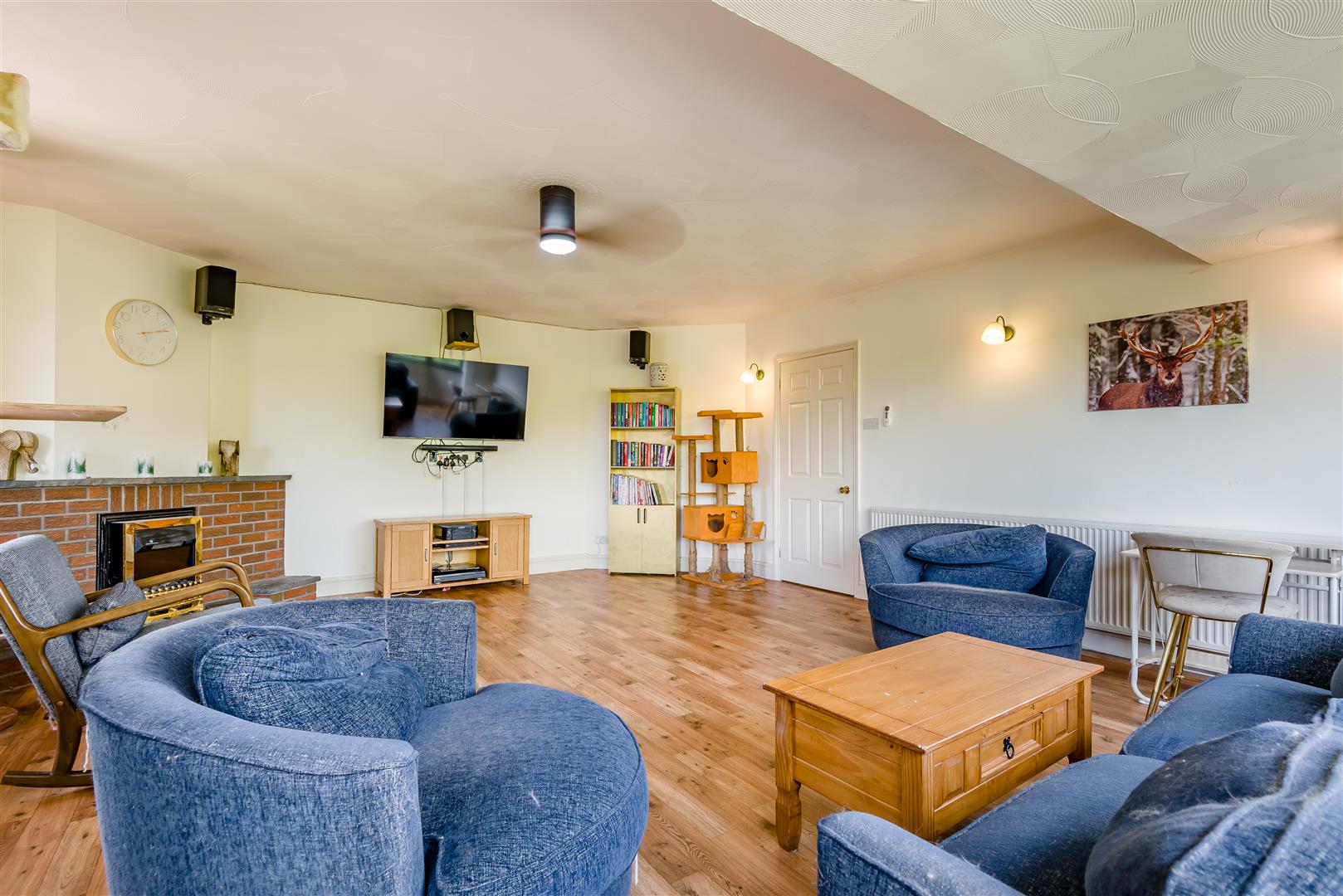 Living Room - 6.55m x 5.36m (21'6" x 17'7") - Feature fireplace with gas fire inset, radiator, large front aspect bay window giving panoramic views of countryside