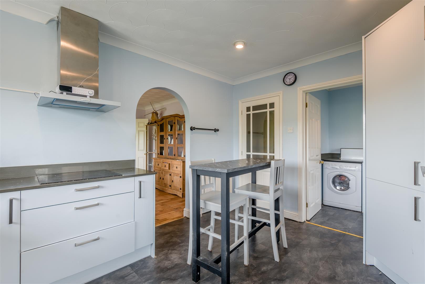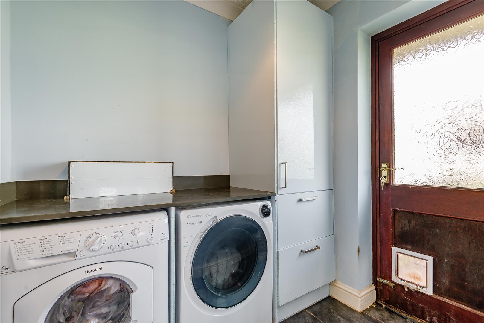 Utility - 1.98m x 1.65m (6'6" x 5'5") - With matching units and worktop to the kitchen, space and plumbing for a washing machine and tumble dryer, side aspect door with steps down to the garden.