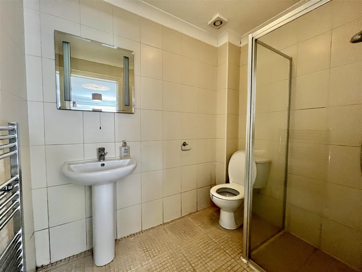 En-Suite Shower Room - Shower cubicle with mains fed shower and tiled surround, low level w.c and pedestal washbasin. Heated towel rail, tiled floor, obscured side aspect window.