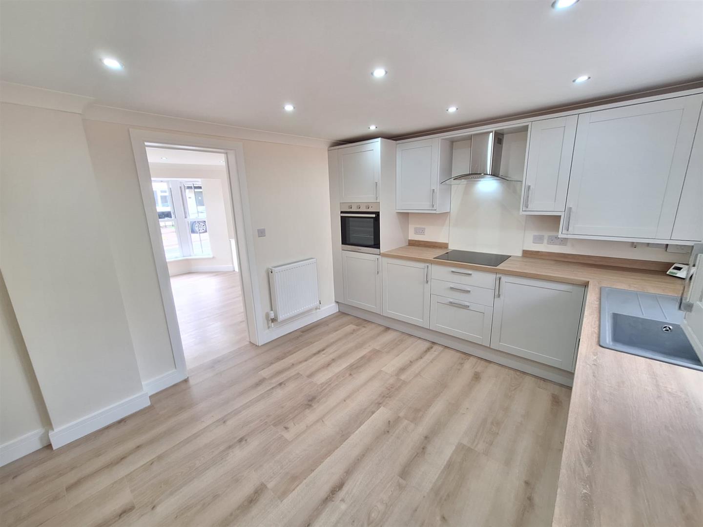 Kitchen/Breakfast Room - 4.11m x 3.23m (13'06 x 10'07) - Single bowl, single drainer sink unit with mixer tap over, square edge worktops, matching upstands, range of base and wall mounted units, four-ring electric hob with brushed stainless steel and glass filer hood above, built-in oven, power points, usb points, wood effect flooring, inset ceiling spots, stairs leading to the first floor, understairs storage area, space and plumbing for automatic washing machine, large cupboard housing the consumer unit, rear aspect upvc sash style Georgian style double glazed window overlooking the garden, door into: