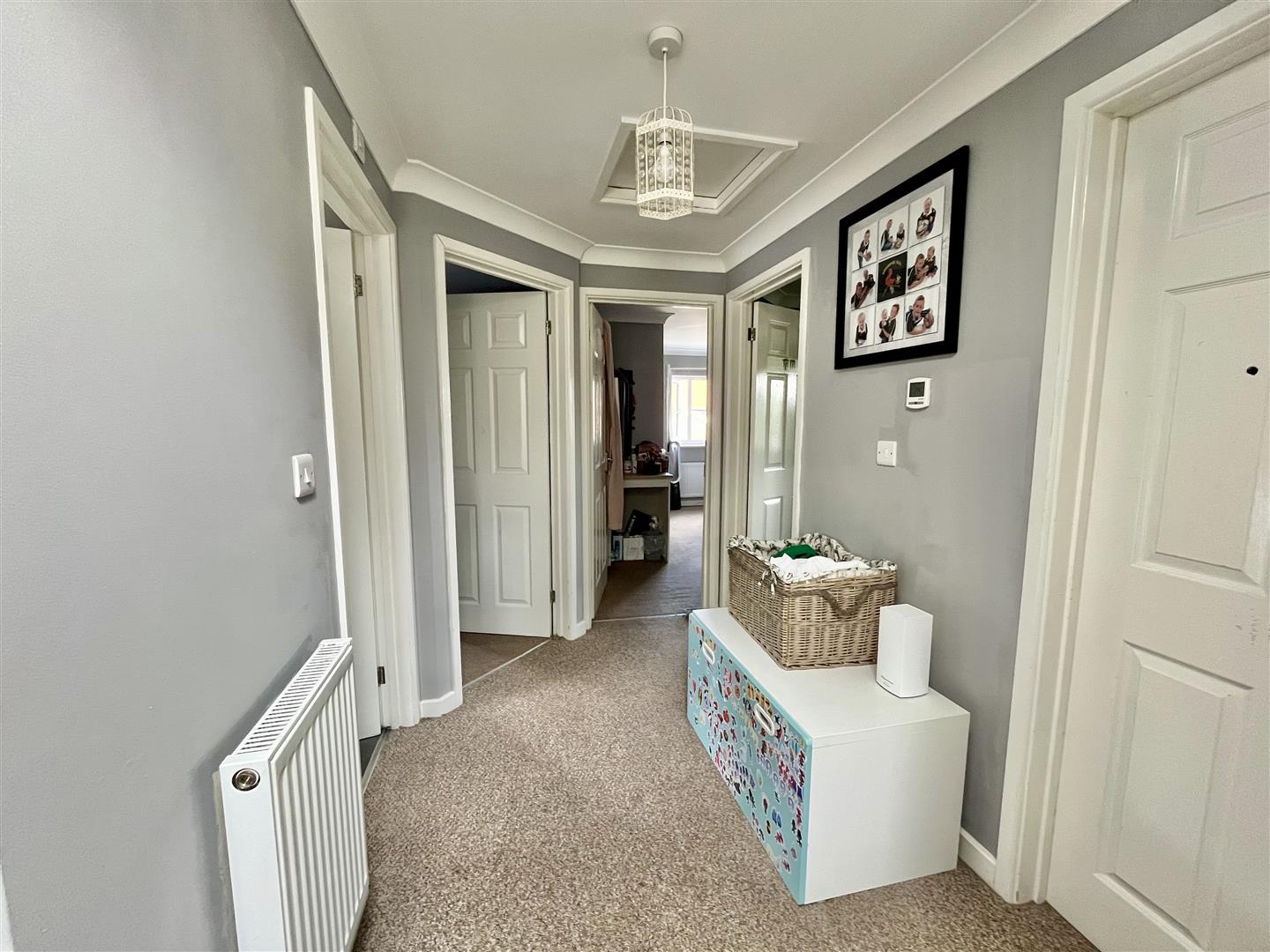 Landing - A spacious landing with airing cupboard, radiator, obscured side and rear aspect windows, skylight, doors lead off to the four bedrooms and family bathroom.