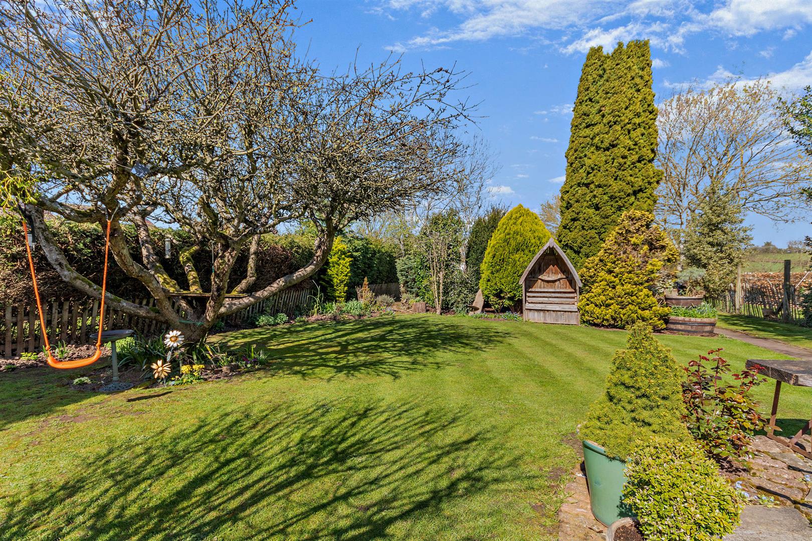 Outside - To the side of the property is a gravelled driveway suitable for the parking of three / four vehicles. To the front of the property a path leads to the front door with gravel garden area to either side, various shrubs, trees, bushes and outside lighting. Side access leads through to mature rear garden with a large expansive of lawn, stone patio area, outside lighting and tap, various interspersed flower beds and borders, mature shrubs, trees and bushes, wooden garden shed, lovely outlook to the rear onto the open fields and farmland.