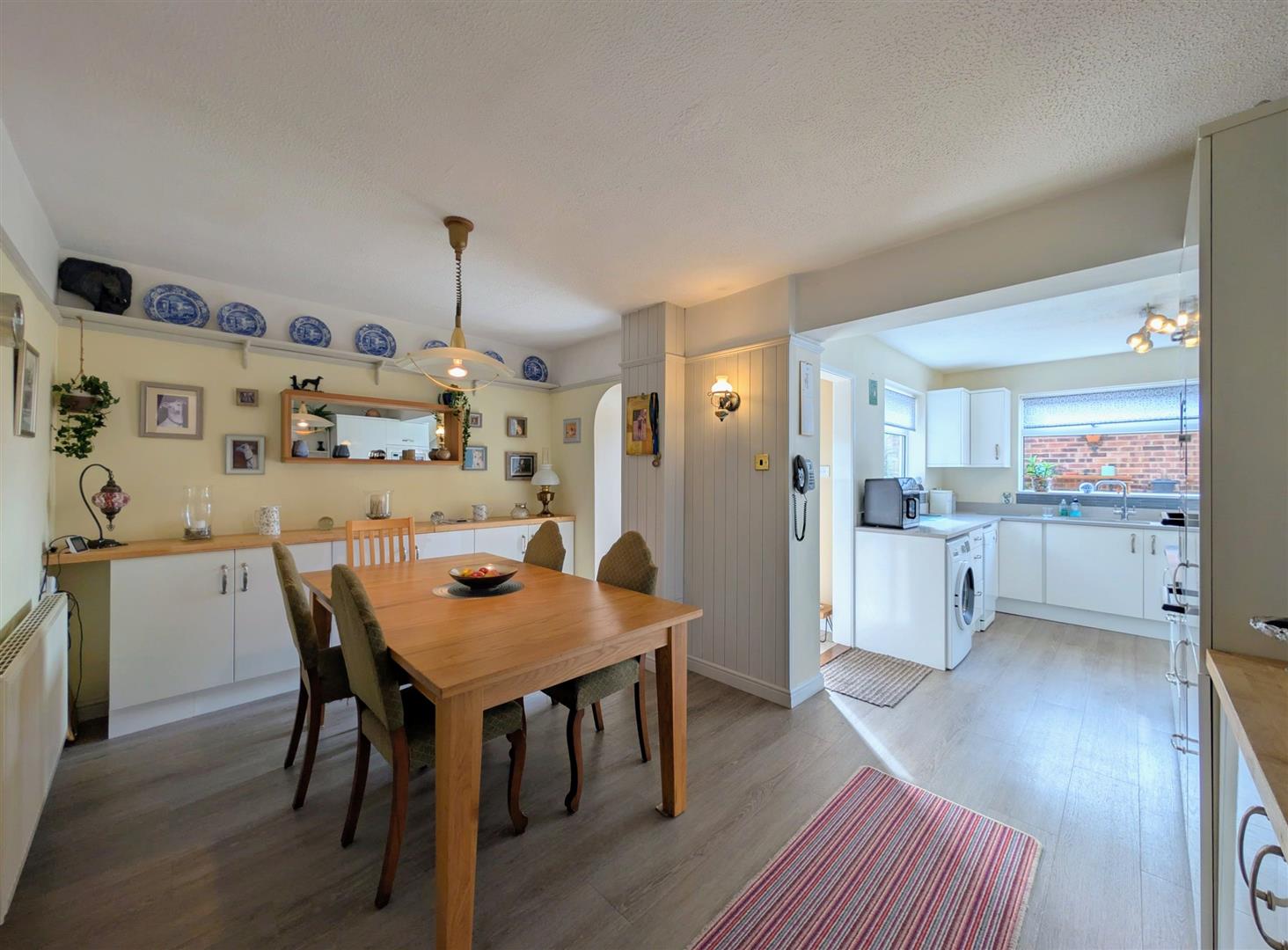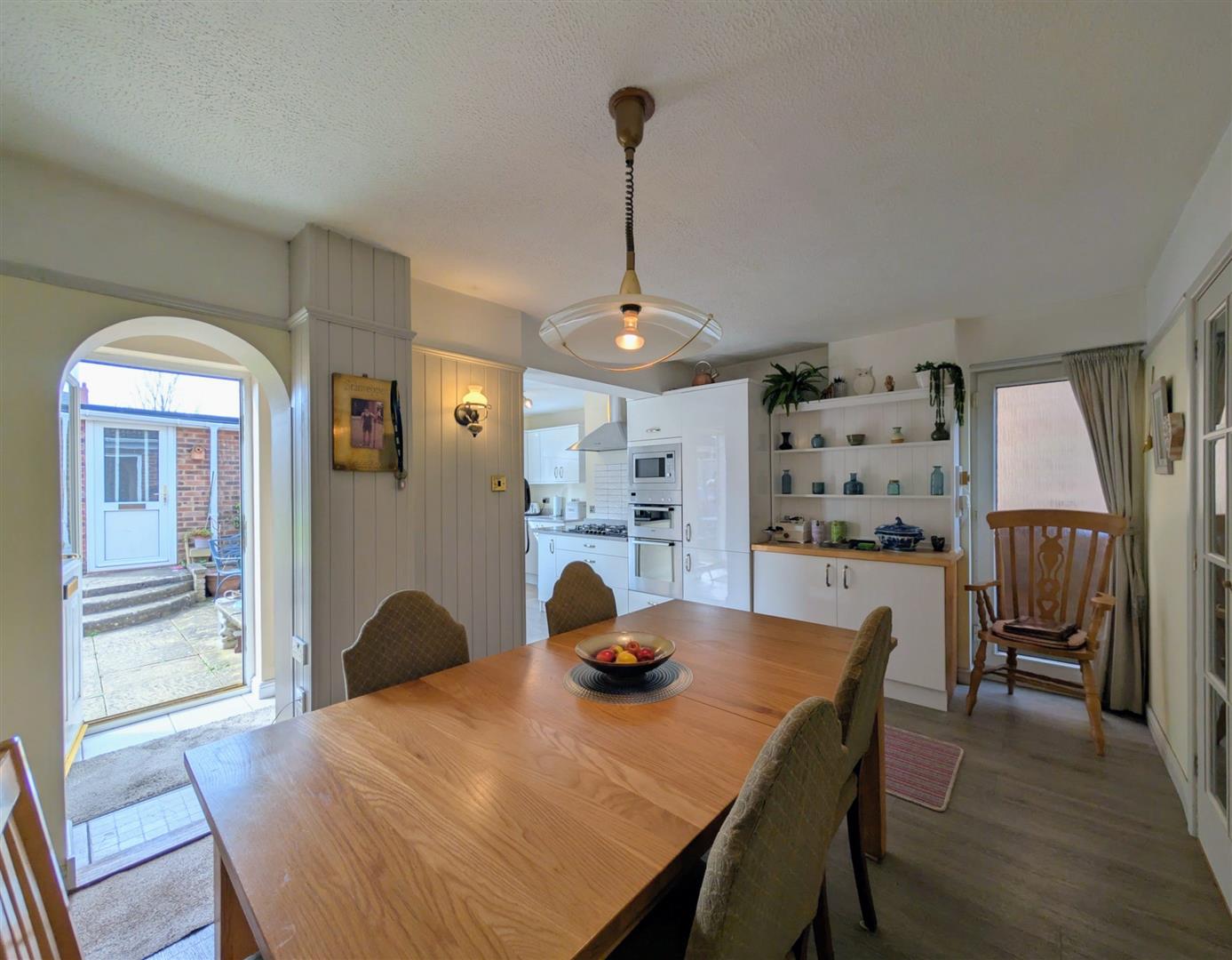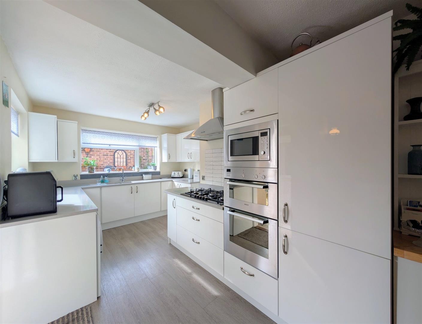Kitchen/Diner - 6.50m x 4.45m max (21'4 x 14'7 max) - A range of modern base and wall mounted units, granite worktops, single drainer one and a half bowl sink unit with a chrome mixer tap, built in electric double oven and microwave, five burner gas hob and extractor hood, built in fridge/freezer, plumbing for an automatic washing machine and dishwasher, newly fitted central heating boiler, space for table and chairs, single radiator, walk in pantry with shelving, double glazed door to rear elevation, upvc double glazed windows to side and rear elevations.