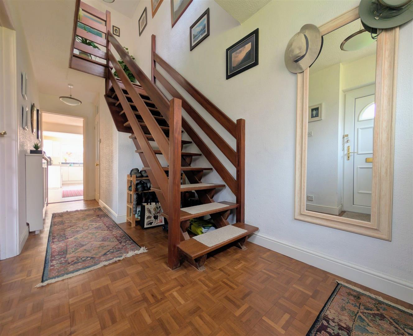 Entrance Hallway - Parquet flooring, single radiator, stairs leading off, upvc double glazed window to front elevation.