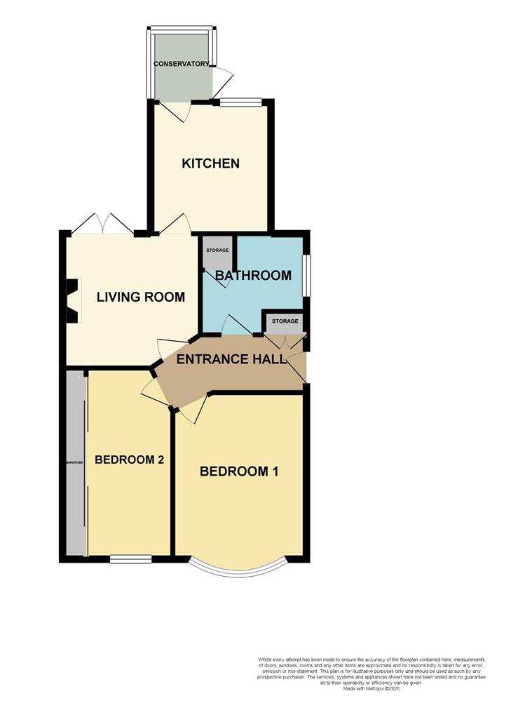 The accommodation comprises entrance hall, lounge, kitchen, conservatory, two double bedrooms and a bathroom.