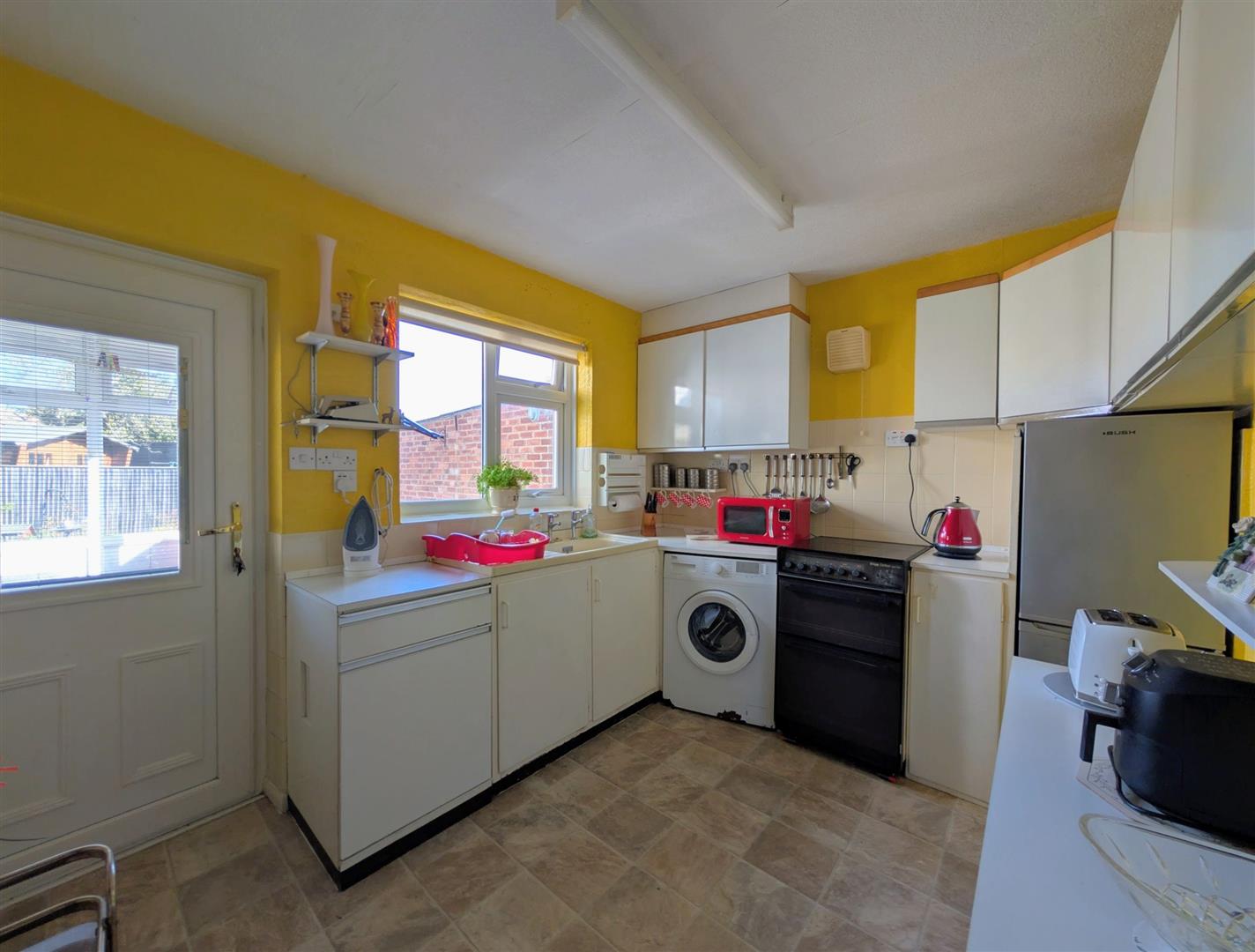 Kitchen - 3.35m x 2.57m (10'11" x 8'5") - A range of base, drawer and wall mounted units, cast sink and drainer unit, tiled splashback, space for fridge/freezer, space and plumbing for an automatic washing machine, space for cooker, radiator, upvc double glazed window overlooking the private rear garden, part glazed upvc door leads into: