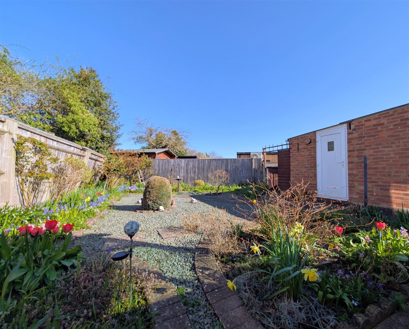 The front garden is low maintenance and has a gravelled area and is enclosed by timber panel fencing and brick walling.