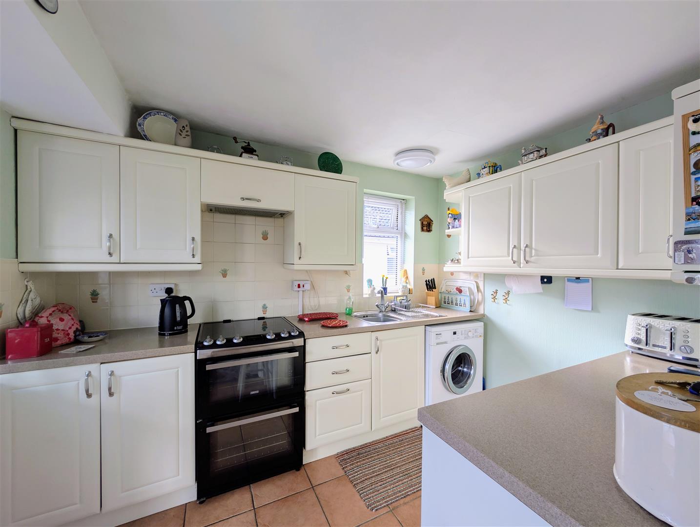 Kitchen - 3.07m x 2.21m (10'1 x 7'3) - Base and wall mounted units, laminated worktops, tiled splashbacks, single drainer stainless steel sink unit with a mixer tap, electric cooker point, plumbing for automatic washing machine, space for fridge, tiled floor, double radiator, upvc double glazed windows to side and rear elevations, matching door to rear elevation into the: