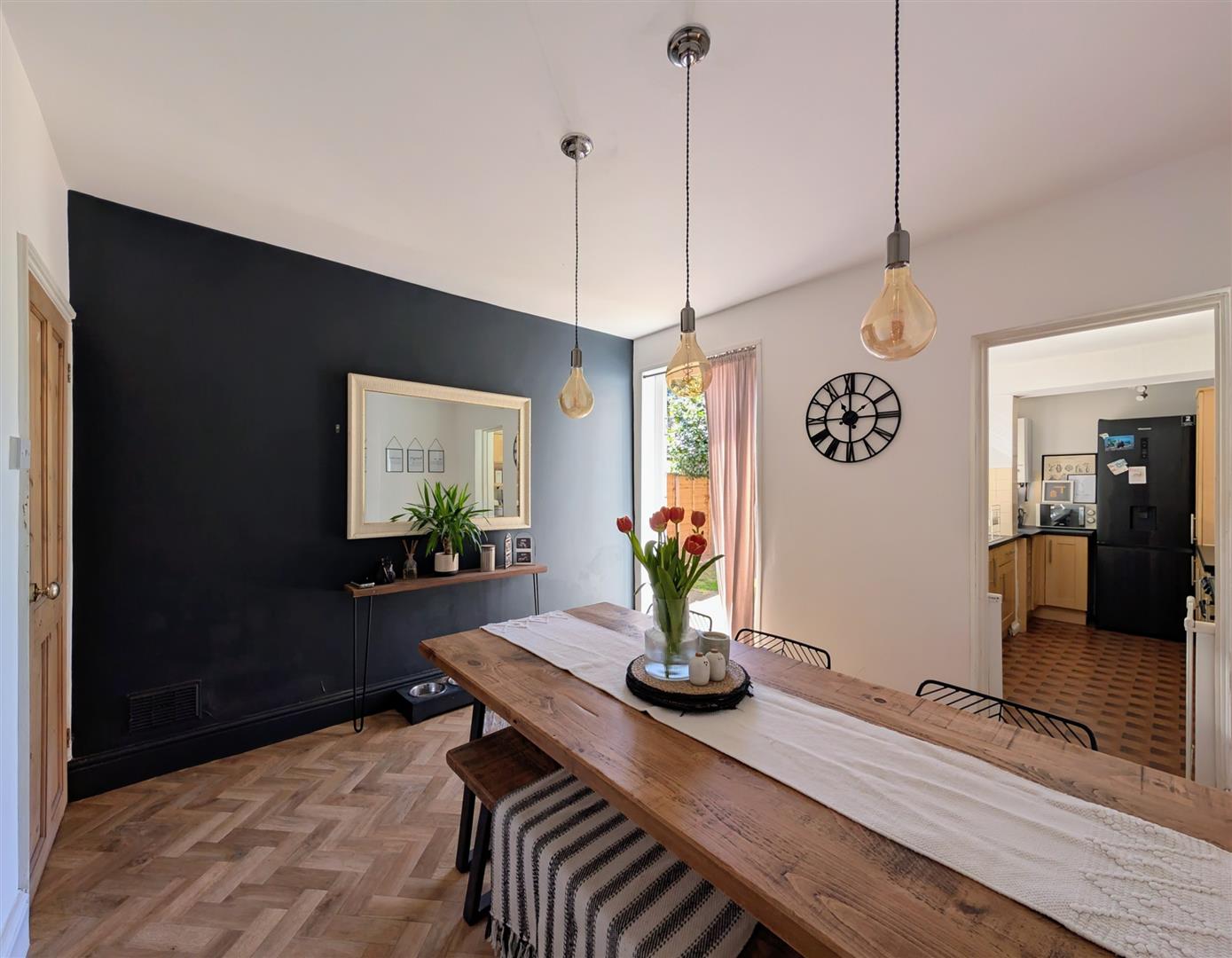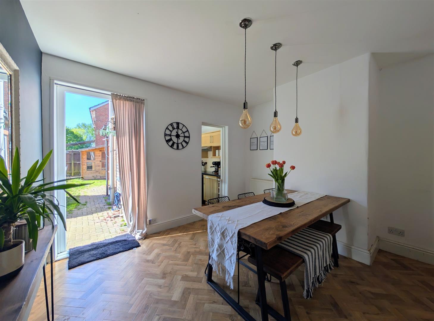 Dining Room - 3.58m x 3.20m max (11'9 x 10'6 max) - Kardean herringbone flooring, double radiator, understairs storage cupboard, upvc double glazed door to rear elevation onto the patio.
