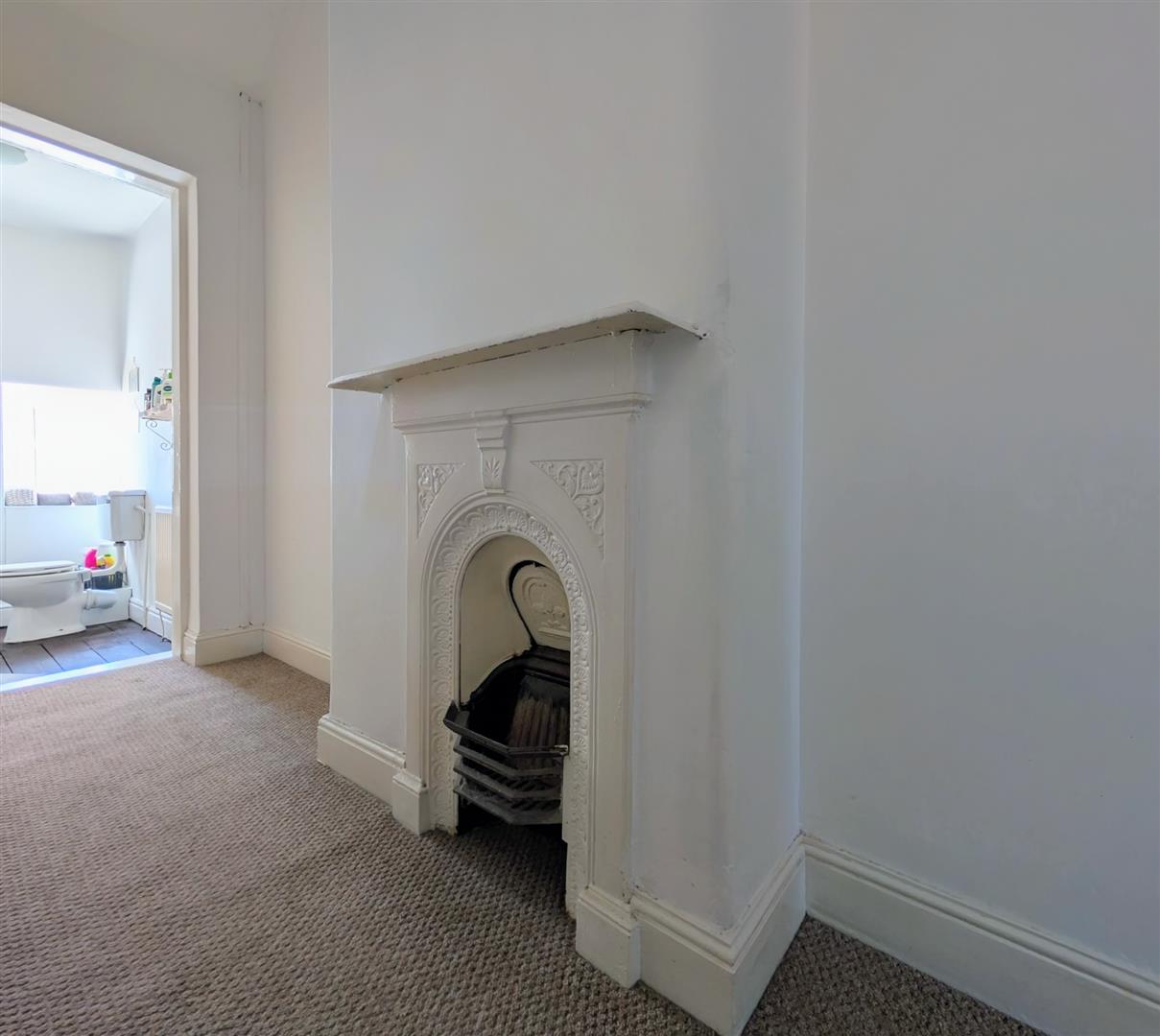 Landing - Former open fireplace with an ornate surround, stairs leading off.