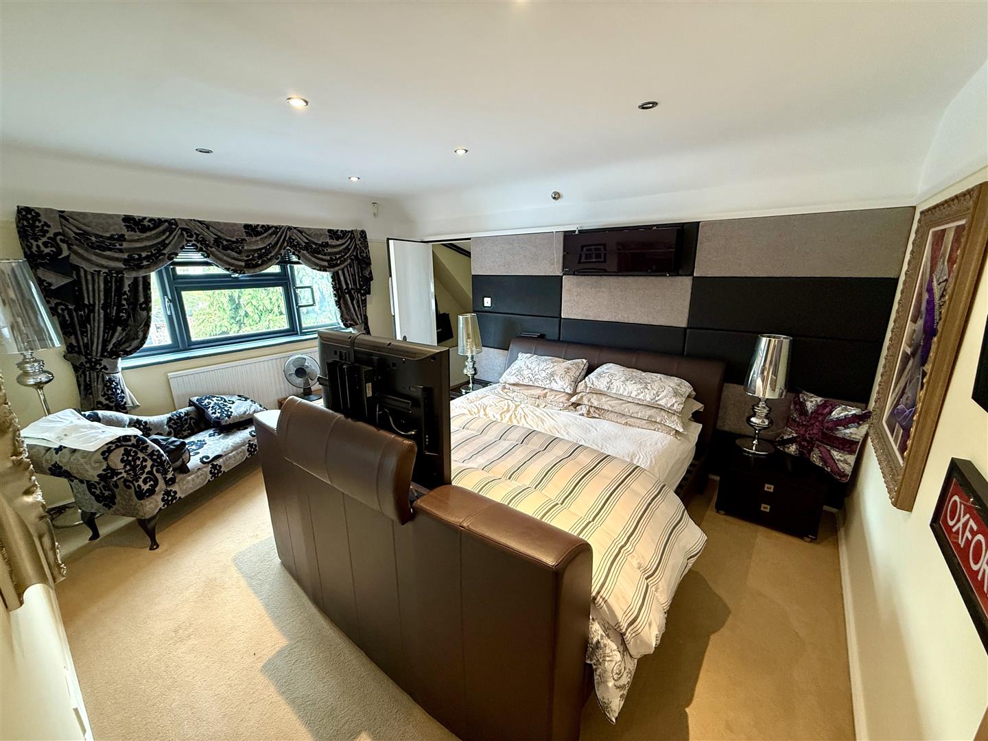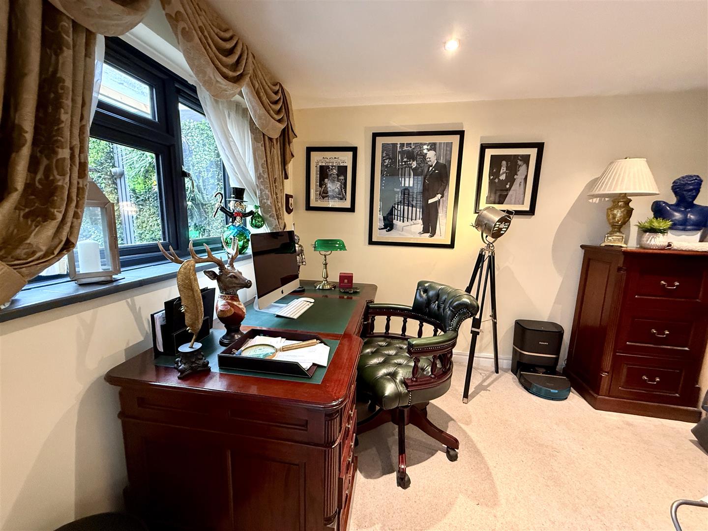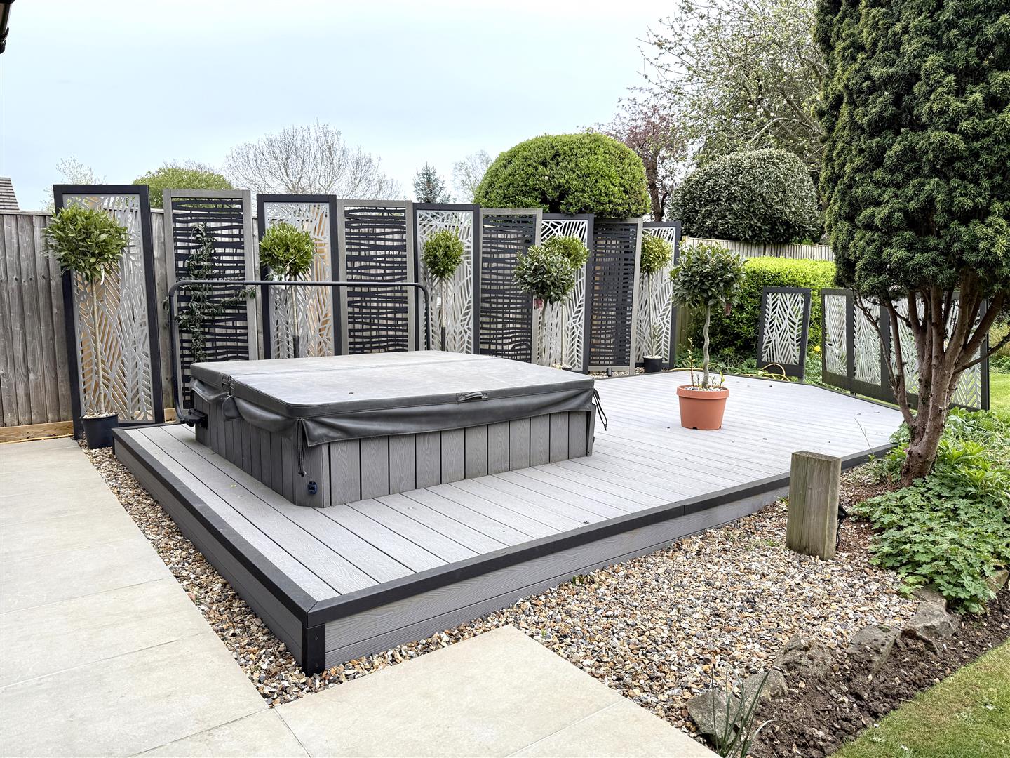 There is a sauna and a separate hot tub, both ideal for relaxing after a long day at work, and a pathway leads to the bottom of the garden with a hidden seating area. The gardens are private and all enclosed by fencing.