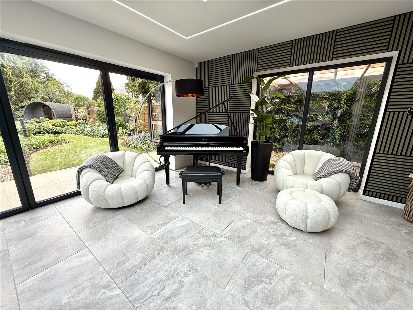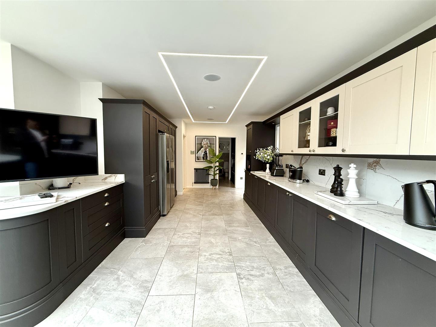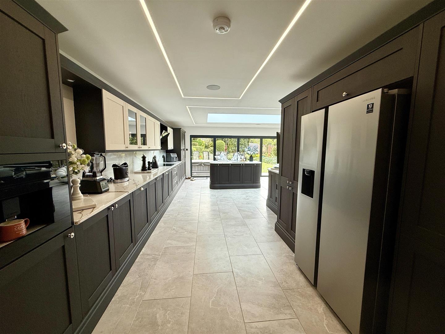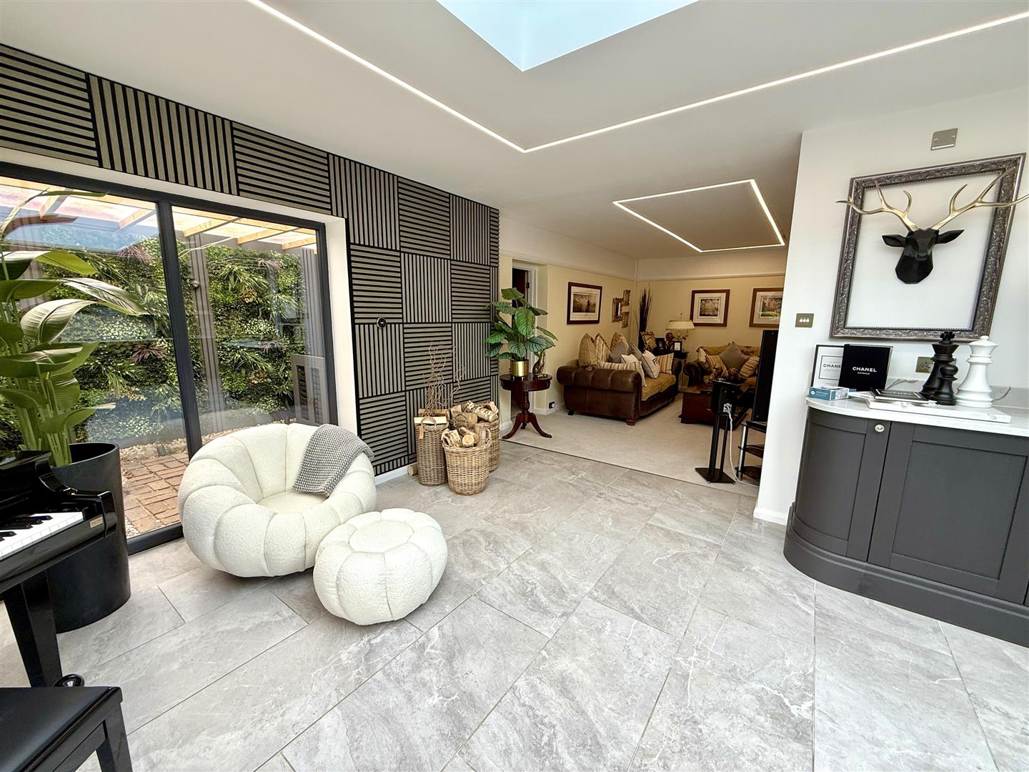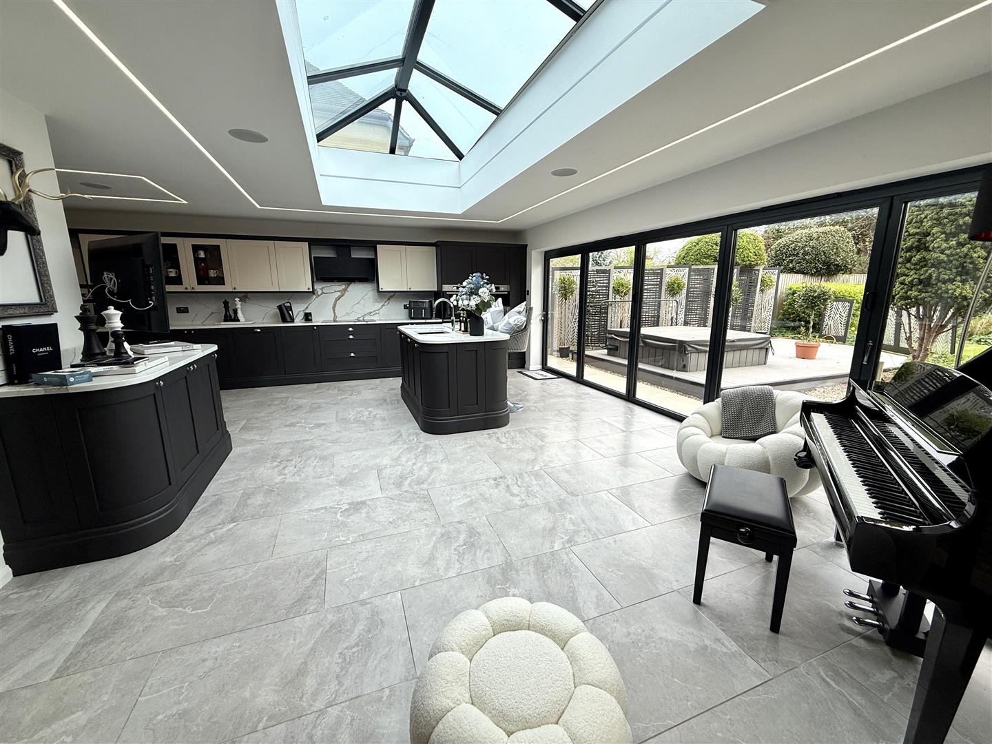 The Property - The kitchen / family / entertaining room is undoubtedly the heart of this beautiful home! The stylish cabinetry is finished off perfectly with marble work surfaces. There are an abundance of integrated appliances and a central island with large roof lantern above. Large bi-fold doors open onto the south facing rear garden, which is beautifully landscaped. There is a sitting room adjacent and a separate lounge and office.