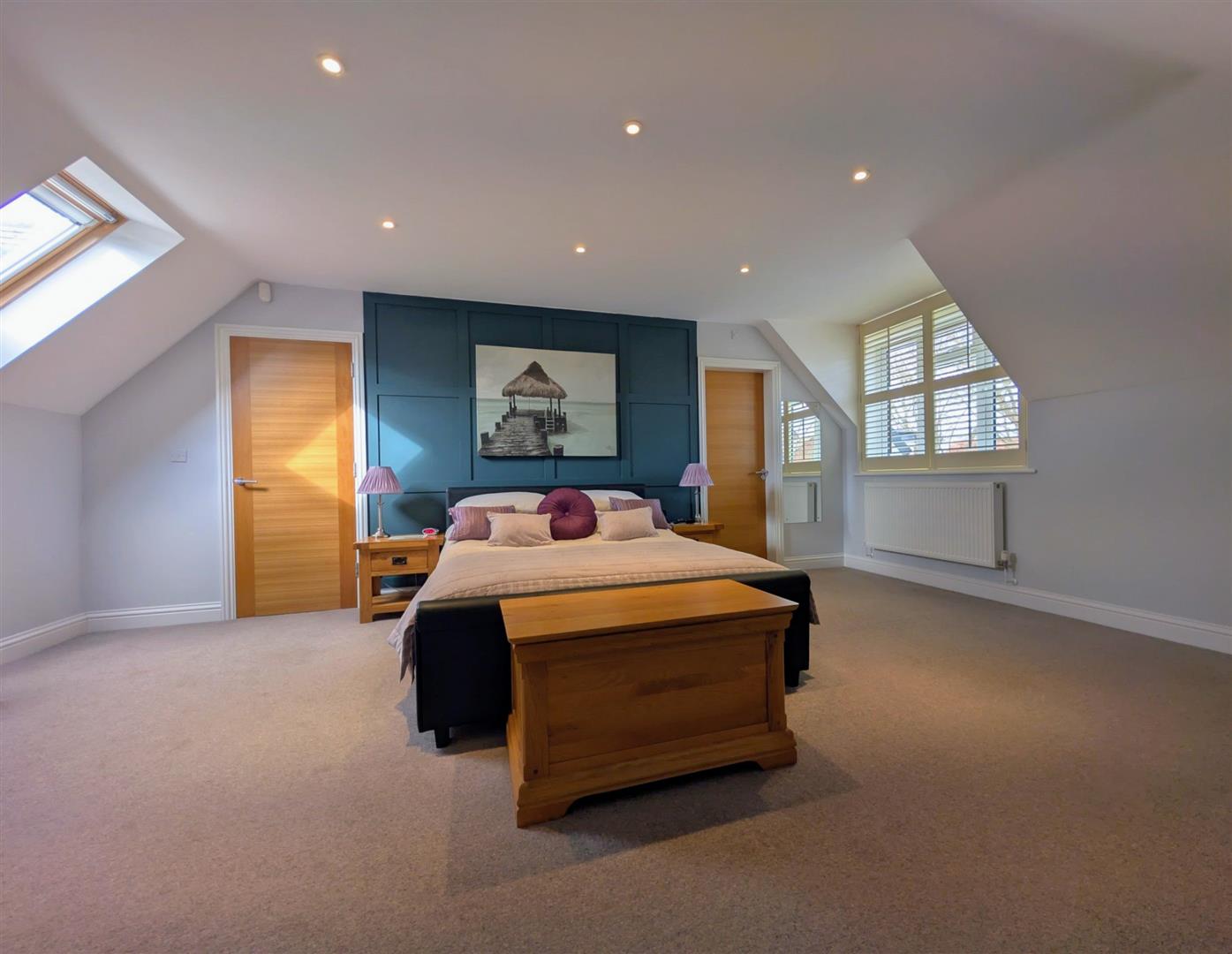 Bedroom 1 - 5.99m x 4.04m (19'8 x 13'3) - Double radiator, tv point, telephone point, downlighters, roof light, upvc double glazed window to rear elevation overlooking the rear garden and surrounding area, step down to the: