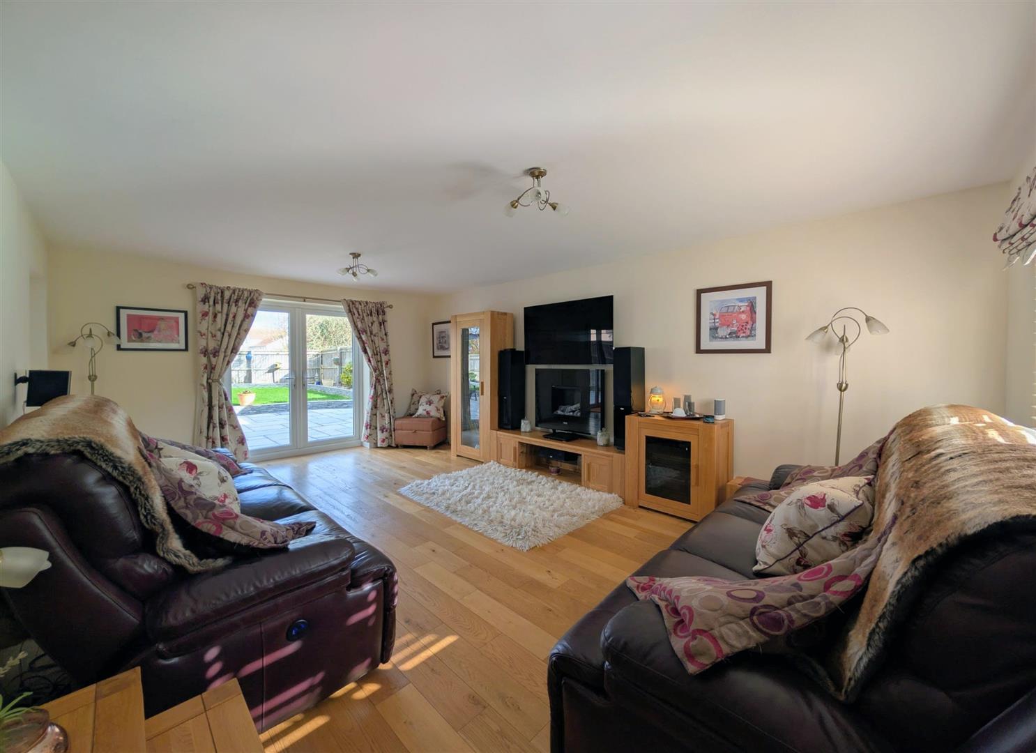 Lounge - 5.99m x 4.04m (19'8 x 13'3) - Engineered oak floor, tv point, underfloor heating, upvc double glazed window to front elevation overlooking the surrounding area, upvc double glazed French doors onto the patio.