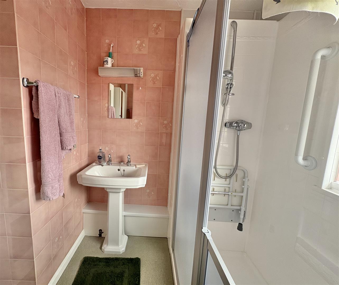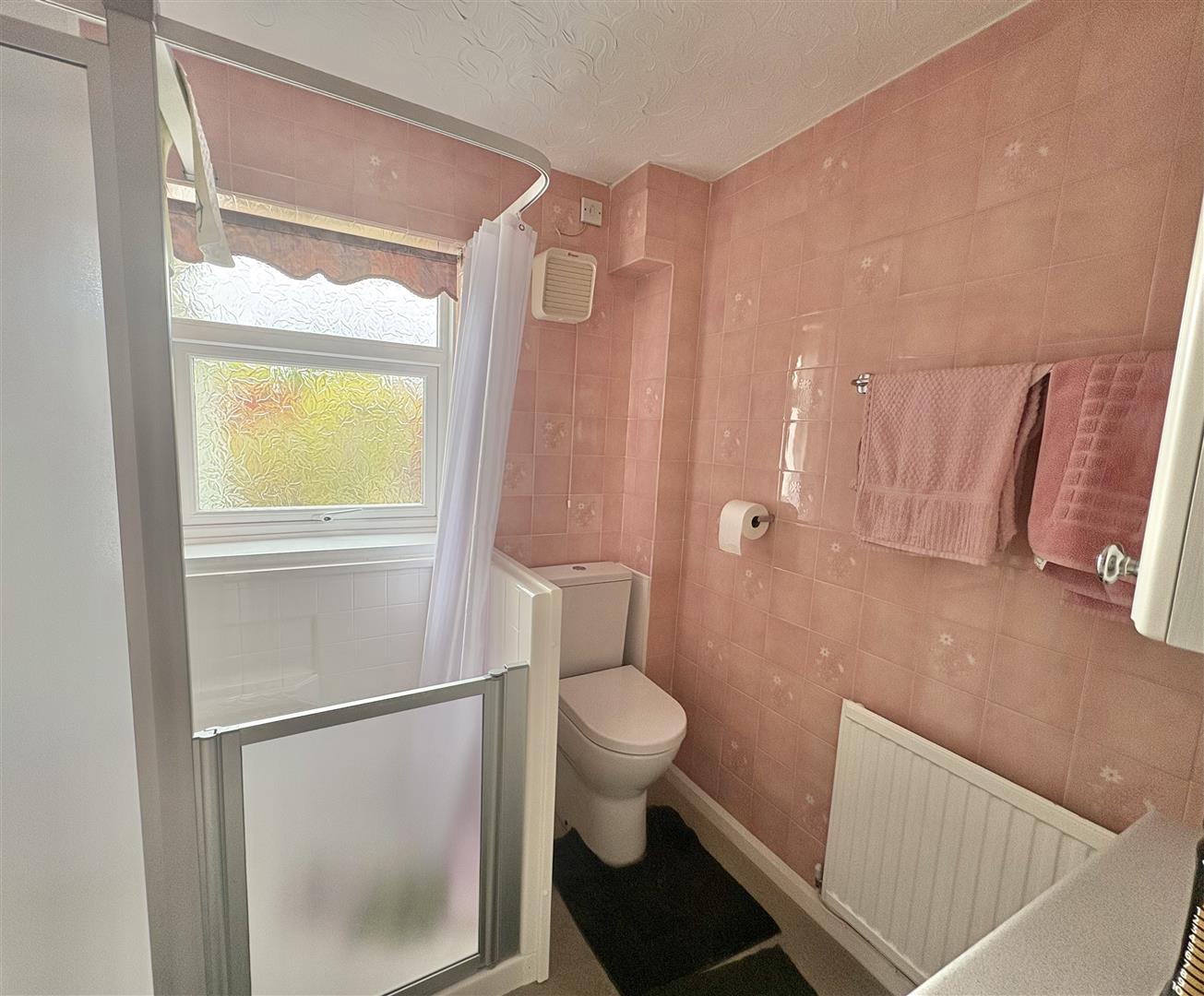 Bathroom - White suite comprising a close coupled w.c., pedestal wash hand basin, a built in vanity unit, mirror fronted medicine cabinet, a walk in fully tiled shower, part tiled walls, radiator, extractor fan, upvc double glazed opaque window to rear aspect.