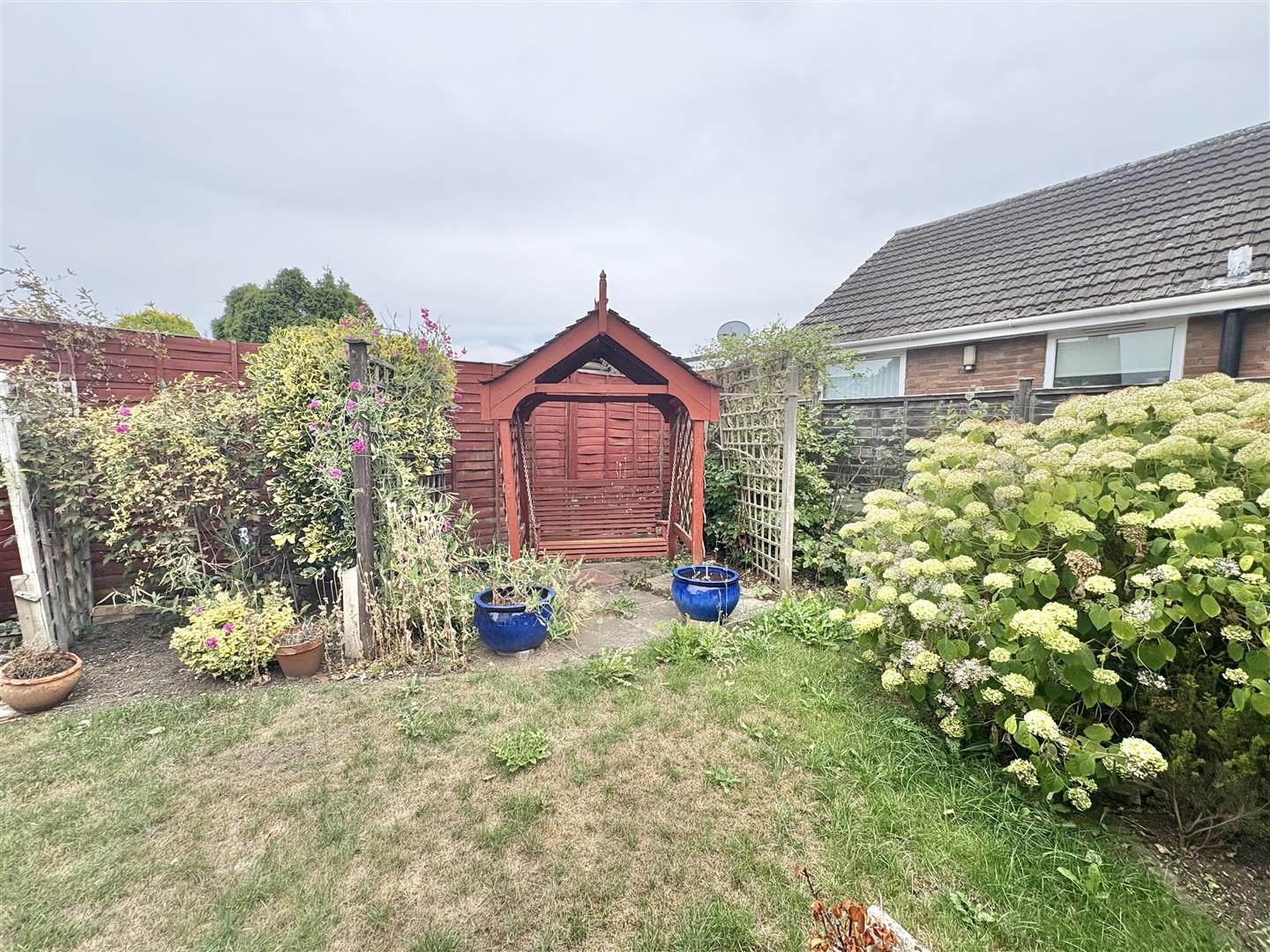 The gardens to the rear are primarily laid to lawn well stocked with mature bushes, shrubs, pergola and swinging seat on the patio area, store shed, water butt and all is enclosed by a combination of timber panel fencing and has a very private aspect.