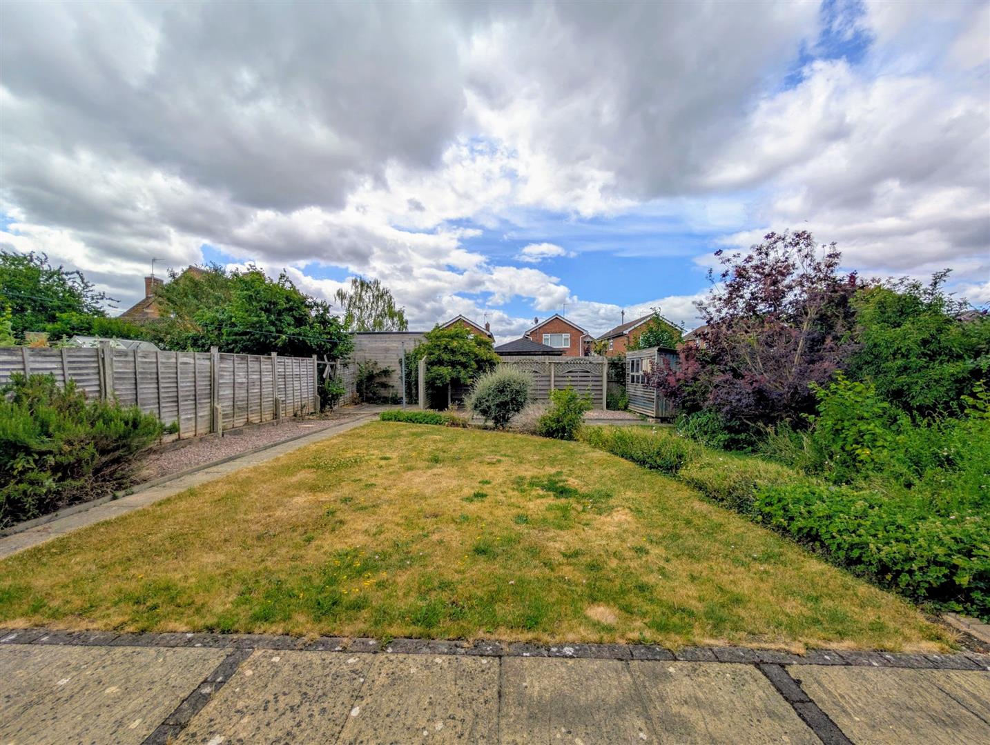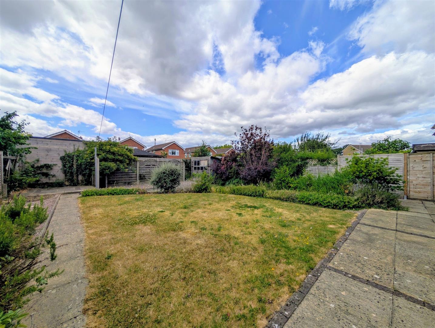 Gated side access leads around to the rear garden which is mainly laid to lawn with flower borders, plants, shrubs, bushes, wooden built garden shed and the whole is surrounded by panelled fencing.