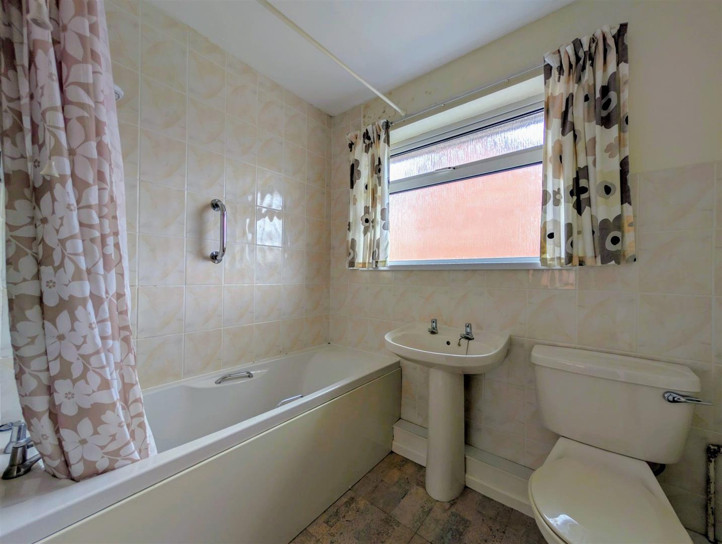 Bathroom - 2.06m x 1.68m (6'9 x 5'6) - White suite comprising panelled bath with a shower unit over, low level w.c., pedestal wash hand basin, partially tiled walls, heated towel rail, shaver point, upvc double glazed window to side elevation.
