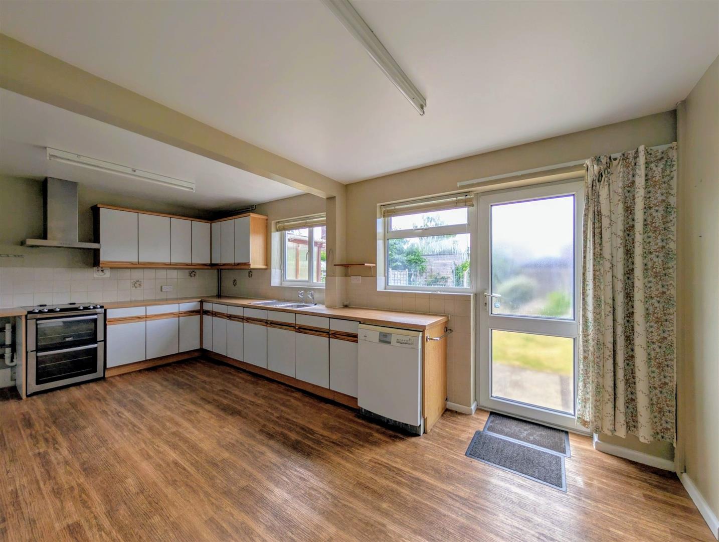 Kitchen - 5.69m x 3.35m max (18'8 x 11' max) - Base and wall mounted units, laminated worktops, tiled splashbacks, single drainer stainless steel sink unit, electric cooker point, extractor hood, plumbing for automatic washing machine and dishwasher, wall mounted gas fired central heating boiler, double radiator, pantry with shelving, two upvc double glazed windows and matching door to rear elevation onto the garden.