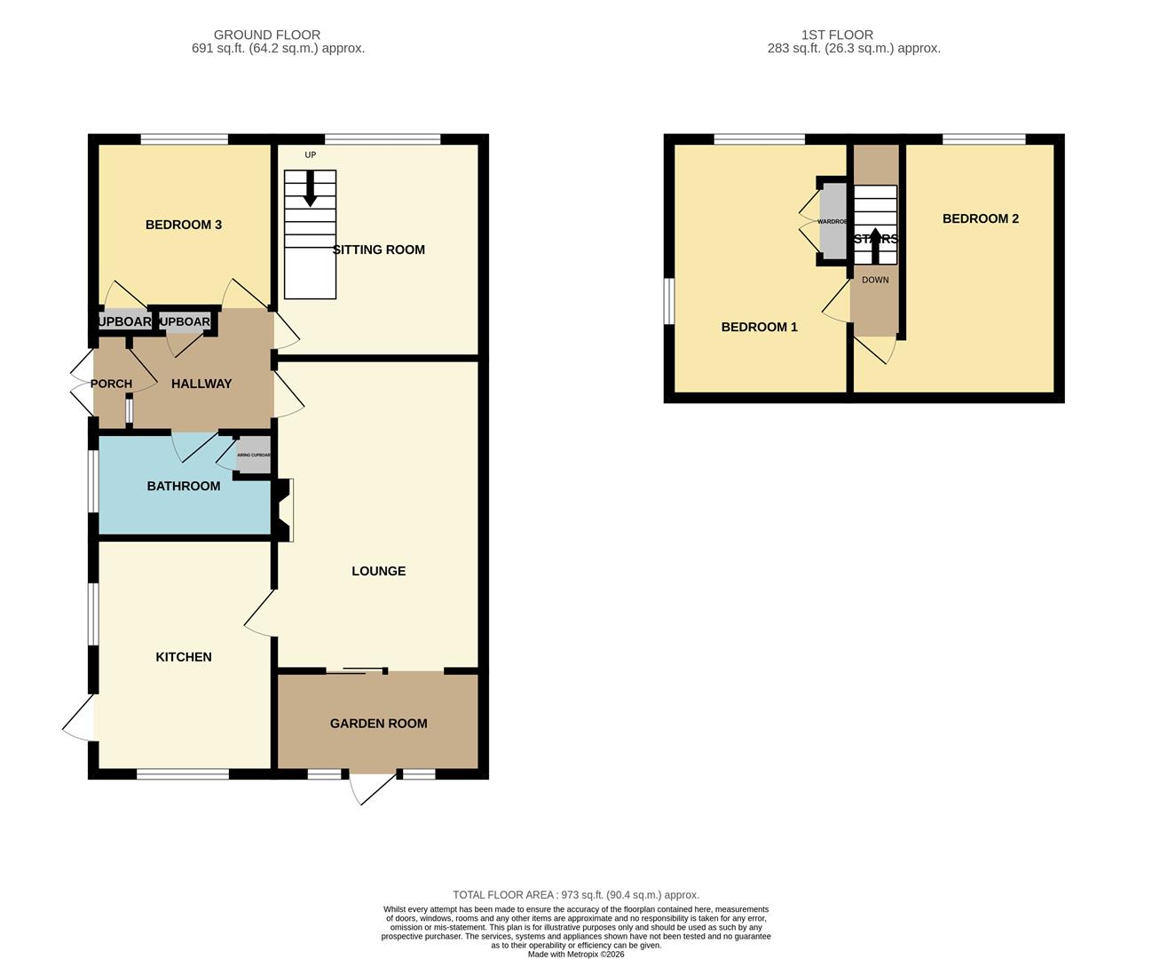 Accommodation comprises hallway, LOUNGE with patio doors into the GARDEN ROOM, EXTENDED KITCHEN, SITTING ROOM, bedroom three, bathroom, bedroom one with fitted wardrobes and bedroom two.