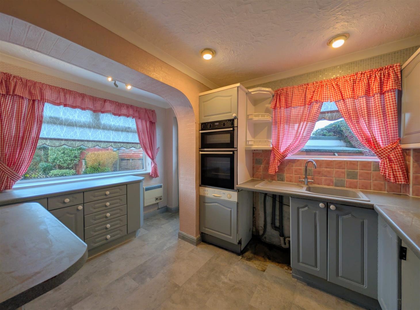 Kitchen - 3.76m x 2.64m (12'4 x 8'8) - Base and wall mounted units, laminated worktops, tiled splashbacks, single drainer sink unit with a mixer tap, built in electric double oven, ceramic hob, extractor hood and dishwasher, plumbing for automatic washing machine, breakfast bar, coved ceiling, upvc double glazed windows to side and rear elevations, matching door to side elevation.