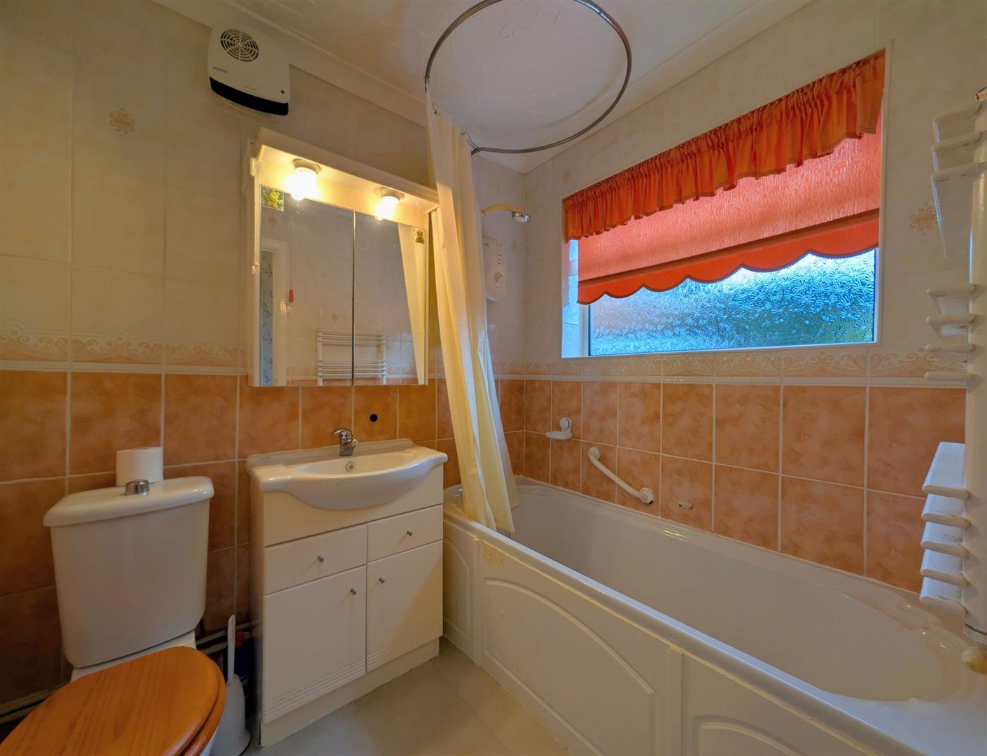 Bathroom - 1.98m x 1.63m (6'6 x 5'4) - White suite comprising panelled bath with a shower unit over, low level w.c., wash hand basin with a mixer tap and cupboard below, fully tiled walls, heated towel rail, coved ceiling, airing cupboard with a single radiator and slatted shelving, upvc double glazed window to side elevation.