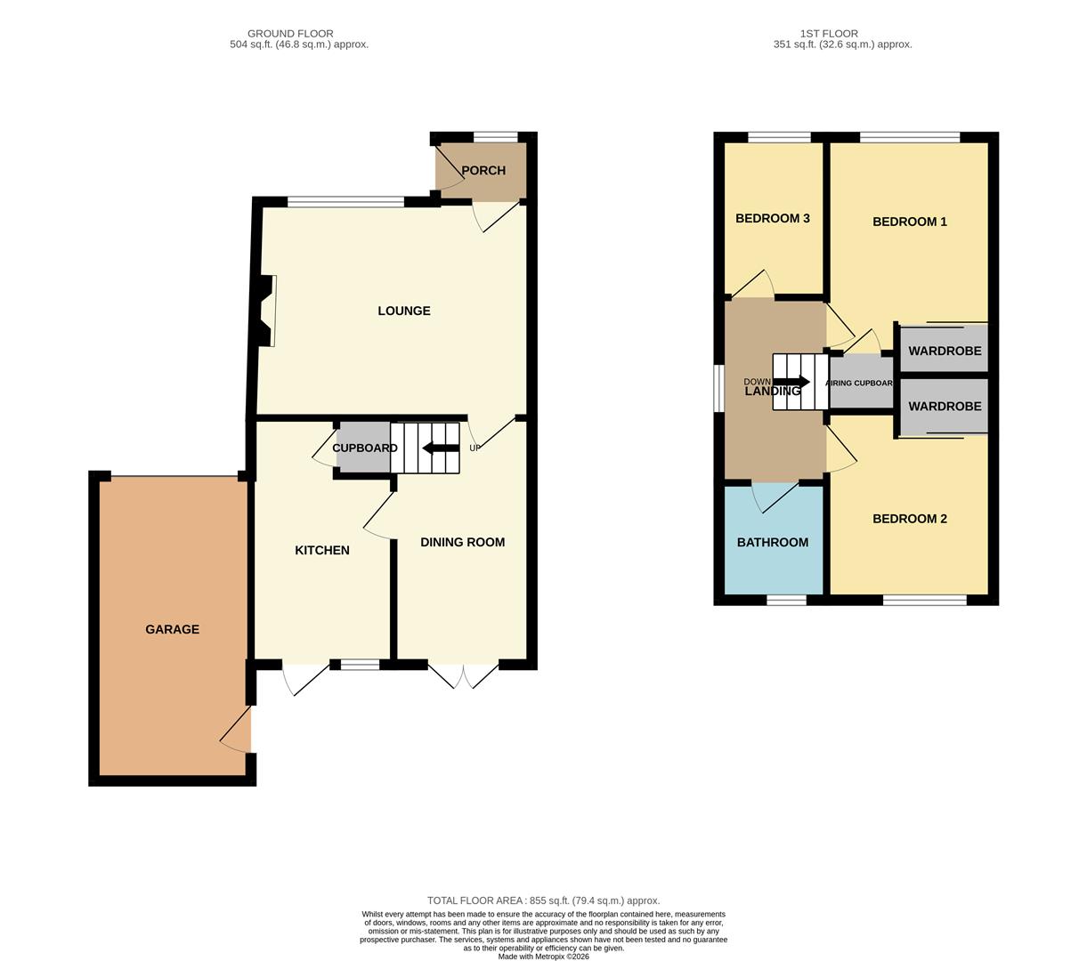 Outside you have a TARMACADAM DRIVEWAY leading to the single garage and a PLEASANT ENCLOSED REAR GARDEN with a paved patio and lawn.