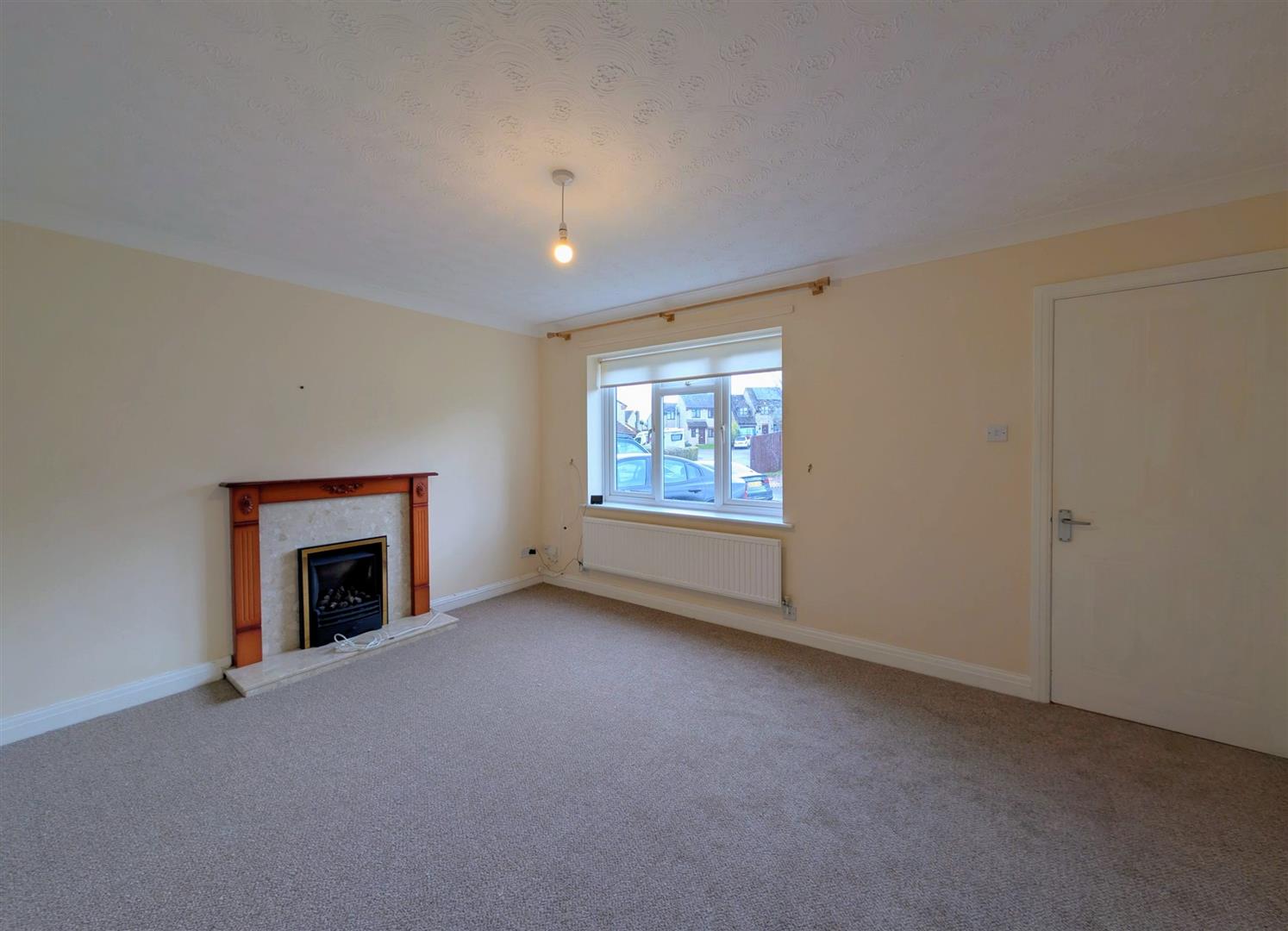 Lounge - 4.45m x 3.45m (14'7 x 11'4) - Fireplace housing a coal effect gas fire with a marblesque and wooden surround, tv point, single radiator, coved ceiling, upvc double glazed window to front elevation overlooking the cul-de-sac.
