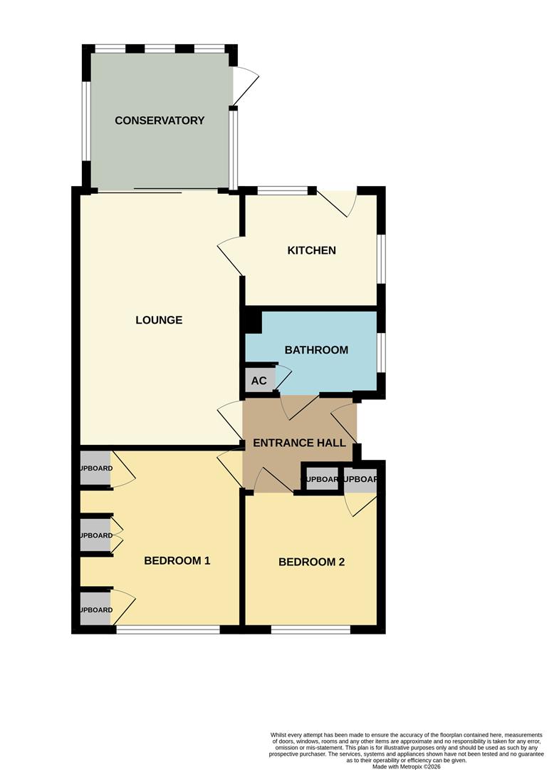 The accommodation comprises entrance hall, lounge, conservatory, kitchen, two bedrooms and bathroom.