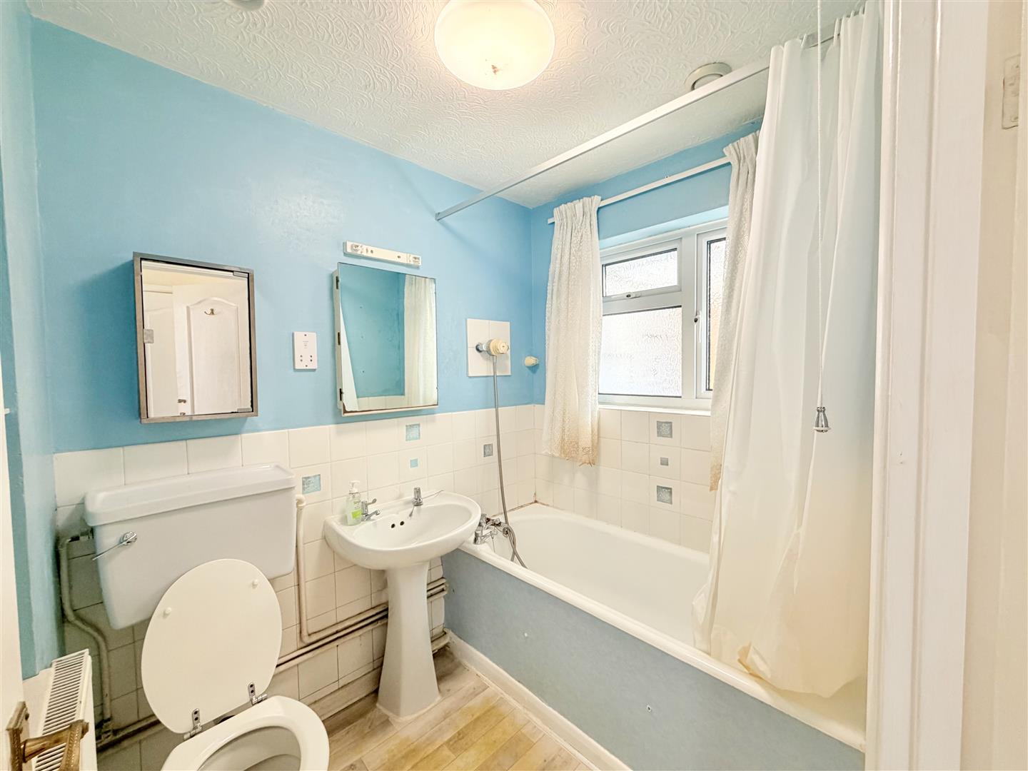 Bathroom - 2.21m x 1.68m max (7'3 x 5'6 max) - White suite comprising bath with overhead shower, pedestal wash hand basin, low level w.c., storage cupboard, upvc double glazed opaque window to side elevation.