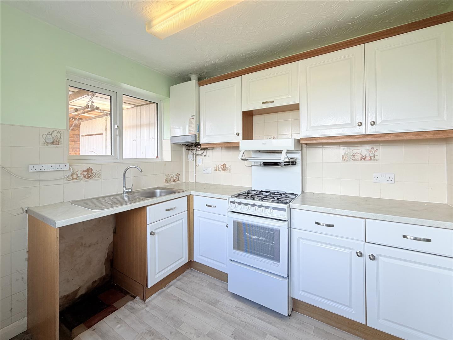 Kitchen - 2.74m x 2.39m (9' x 7'10) - A range of base, drawer and wall mounted units, roll edge worksurface, stainless steel sink and drainer unit with a mixer tap, tiled splashback, plumbing for washing machine, space for fridge/freezer, power points, radiator, upvc double glazed windows to rear and side elevations, upvc door with opaque double glazed window leading into the rear garden.