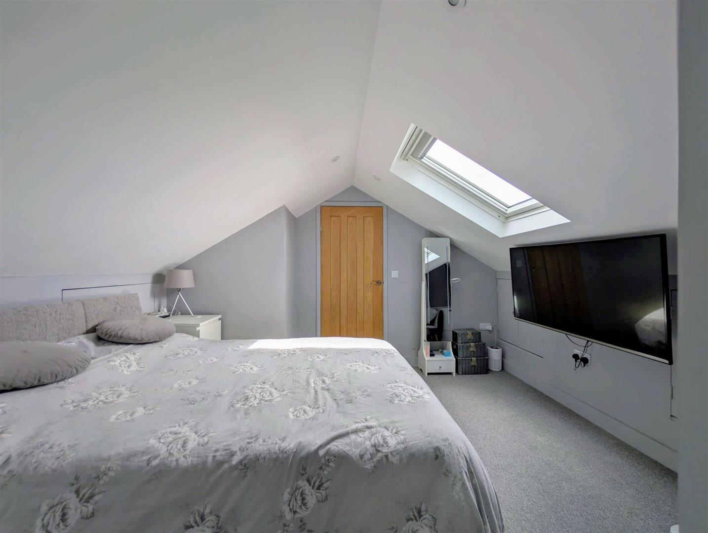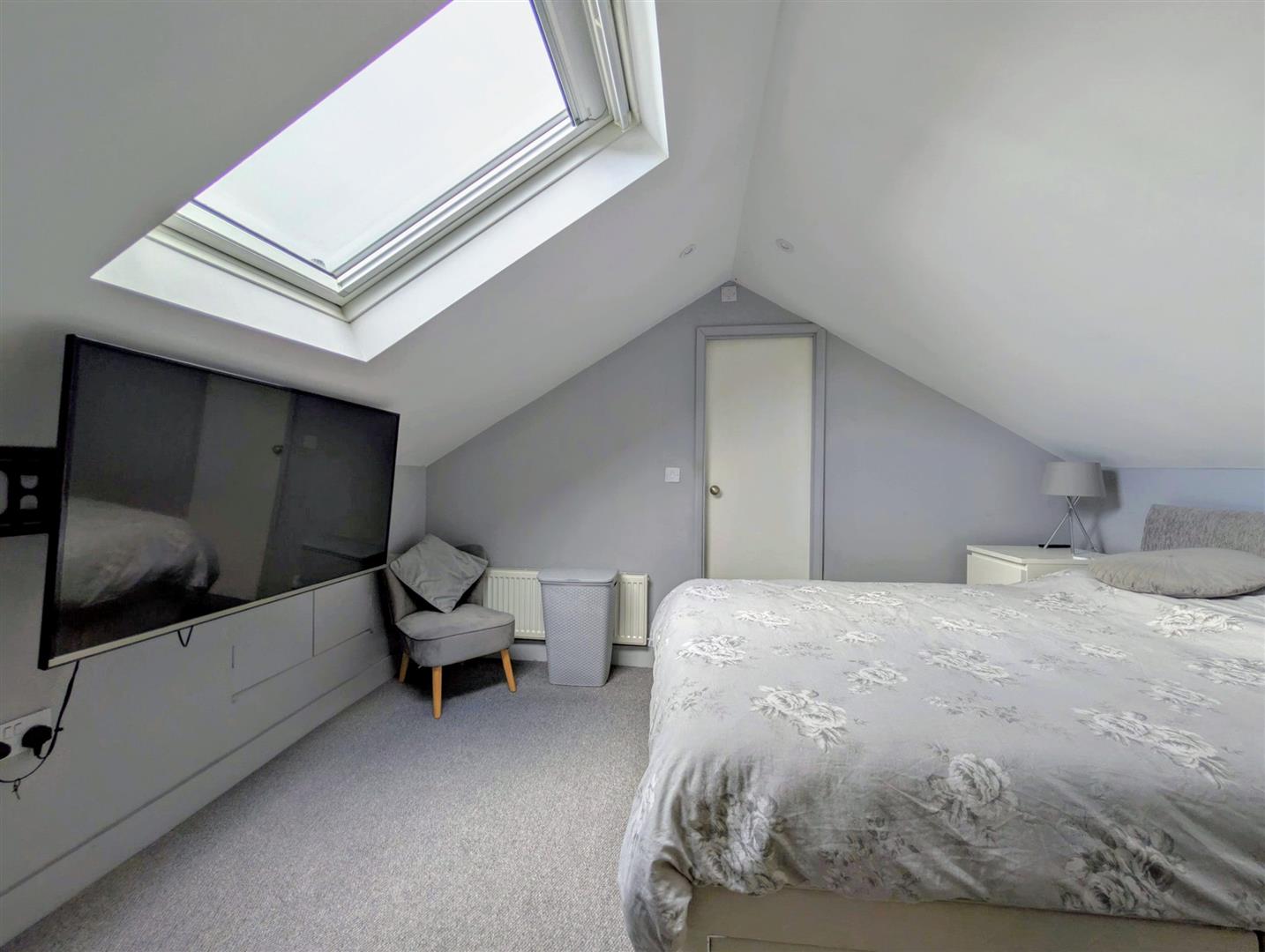 Bedroom 1 - 3.66m x 3.07m max (12' x 10'1 max) - Single radiator, tv pint, roof light, through to: