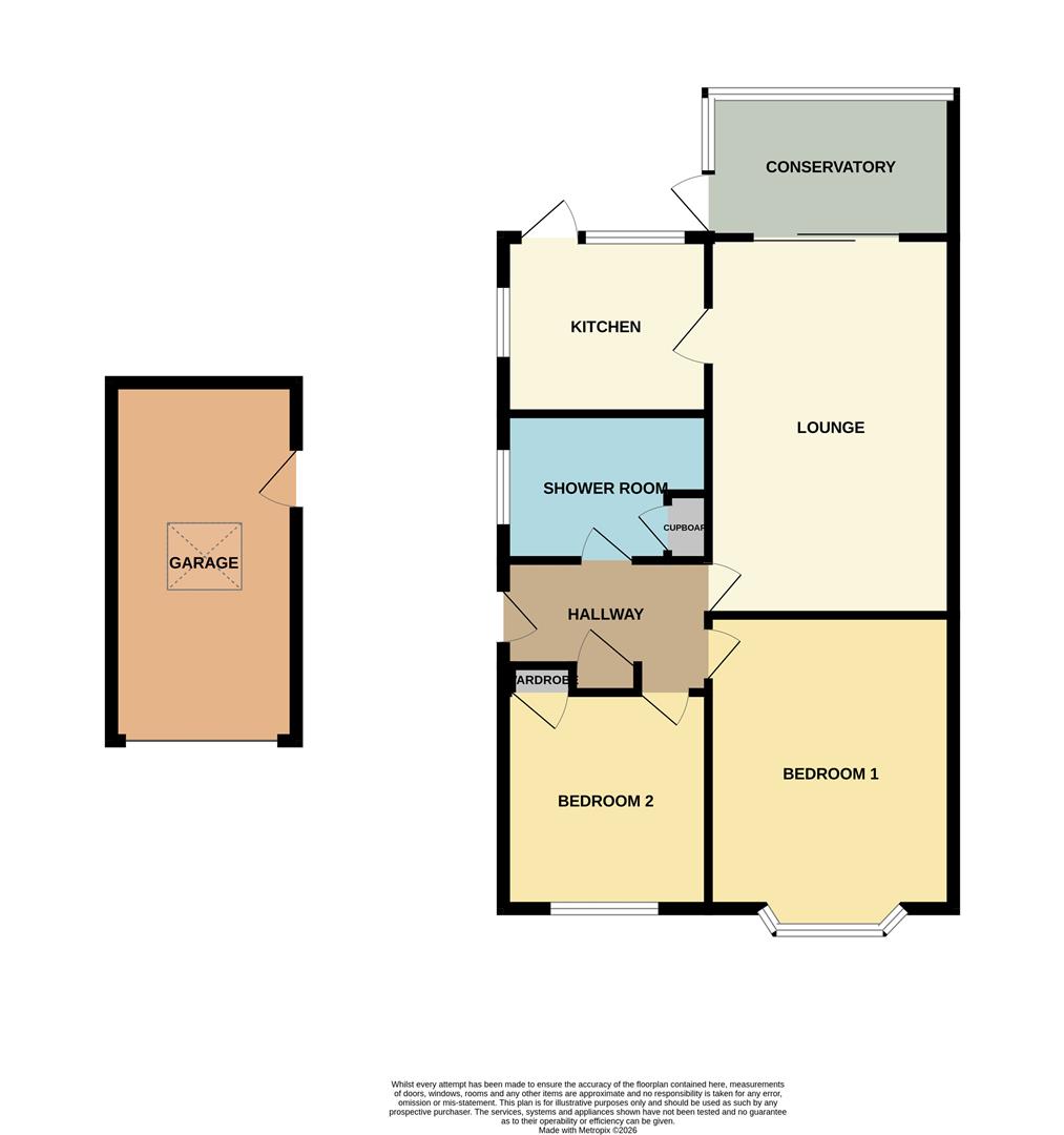 The accommodation comprise hall, lounge, kitchen, conservatory, two double bedrooms and bathroom.